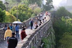南京城壁からメトロ駅に急ぎます。今から、新幹線、リニアモーターカー、飛行機と乗り継いで、10時間後には自宅にいて、すぐ会社へ出勤という計算。