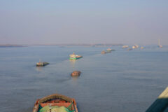 長江の支流の水路を幾度も渡ります。