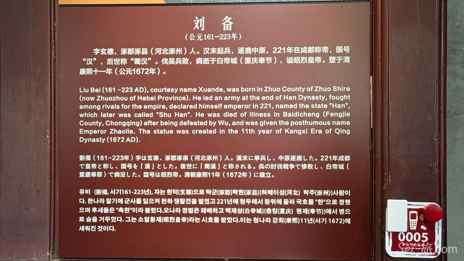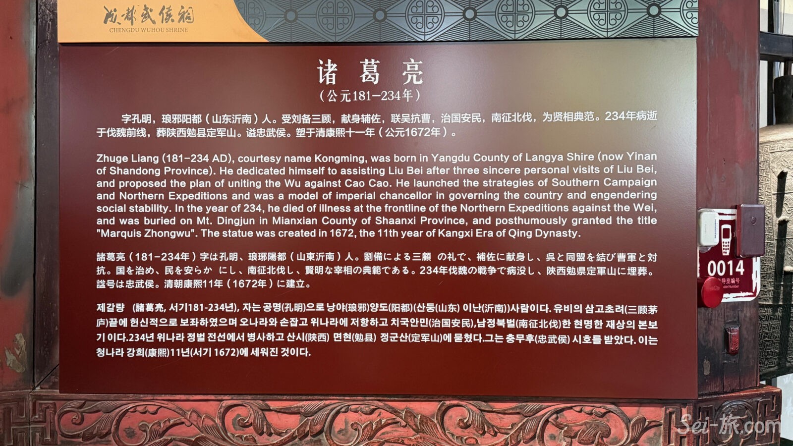 劉備を祀る「漢昭烈廟」と、諸葛孔明を祀る「武侯祠」が、もとは別々だったものが合祀されたのが武侯祠のようです。