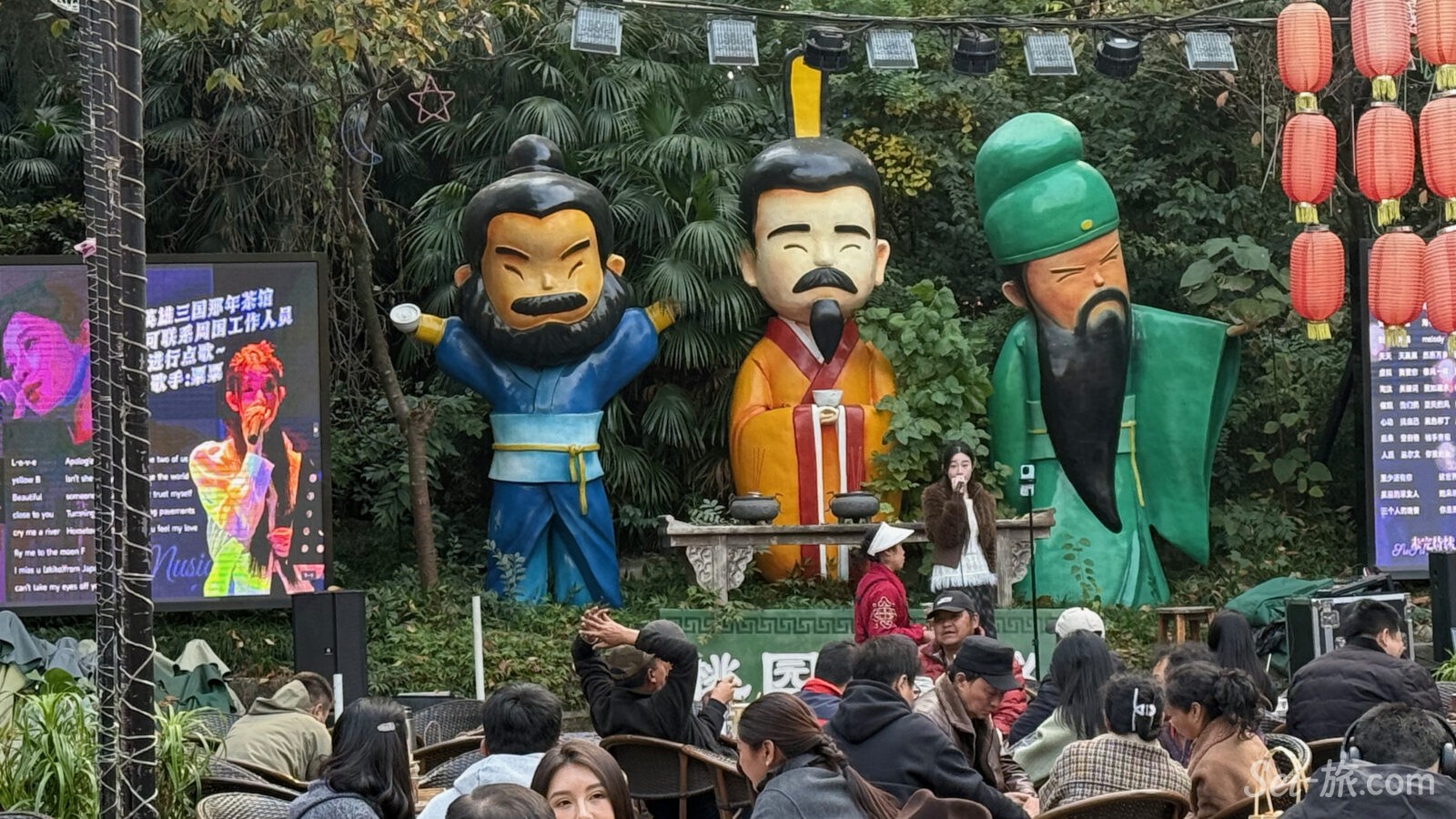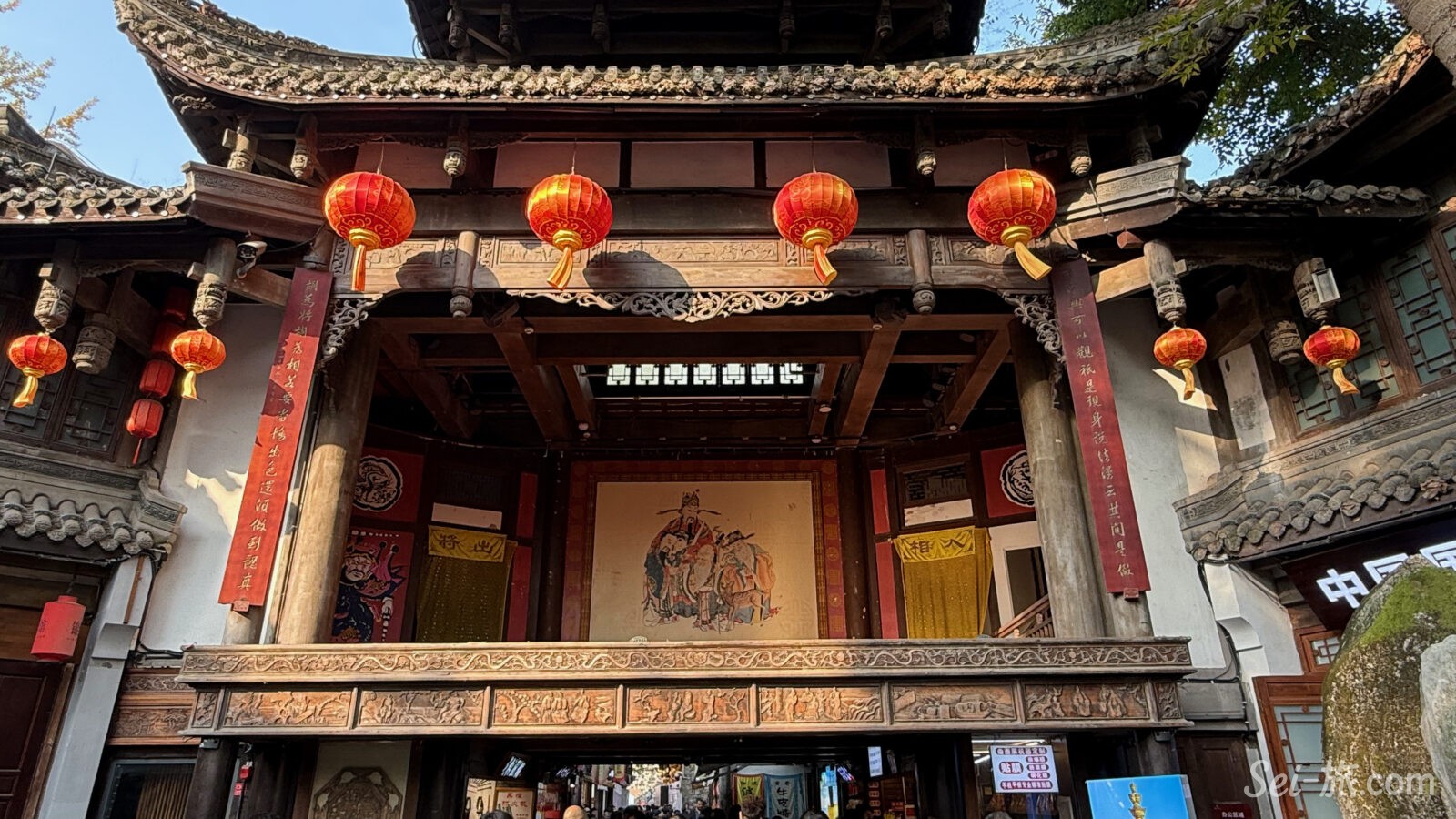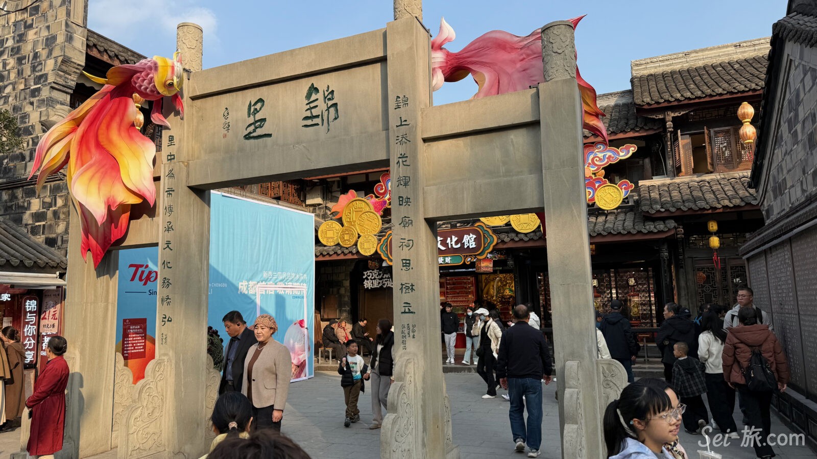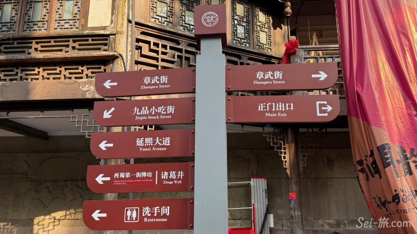 観光客であふれ、提灯が吊るされ、川劇の変臉や三国志グッズが並ぶ、歩いてとても楽しい老街。