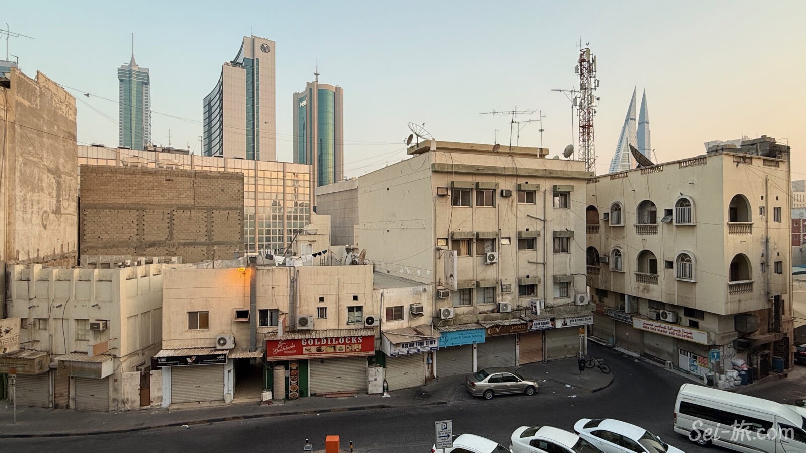 朝、バーレーンに着いてから、「アル・ファテ・グランド・モスク」、「バーレーン要塞」、「ムハッラク地区」と回り、夜のマナーナ・スークでお茶を楽しんだあとは、「ダウンタウン・ロタナ」のルーフトップバーにて、ハイネケンで夜景鑑賞。