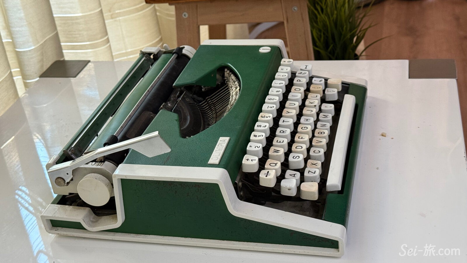 なぜかソファの横に置いてあった、昔懐かしいタイプライター。