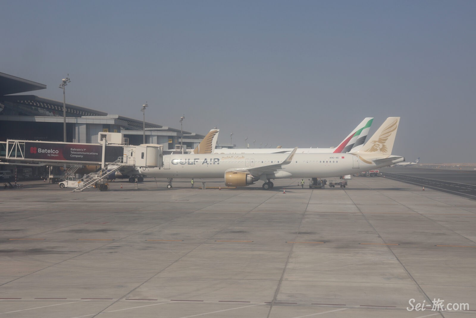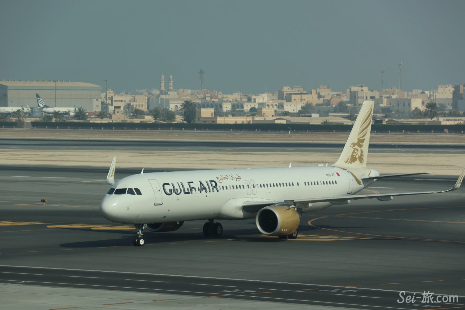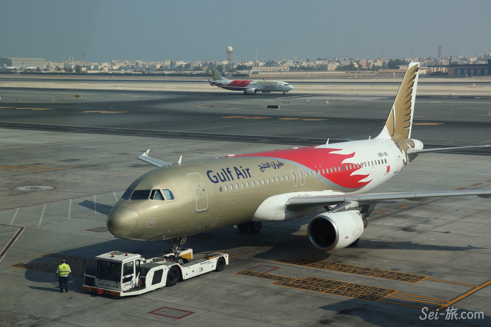 フライトはガルフエア。歴史あるバーレーンの国営航空。