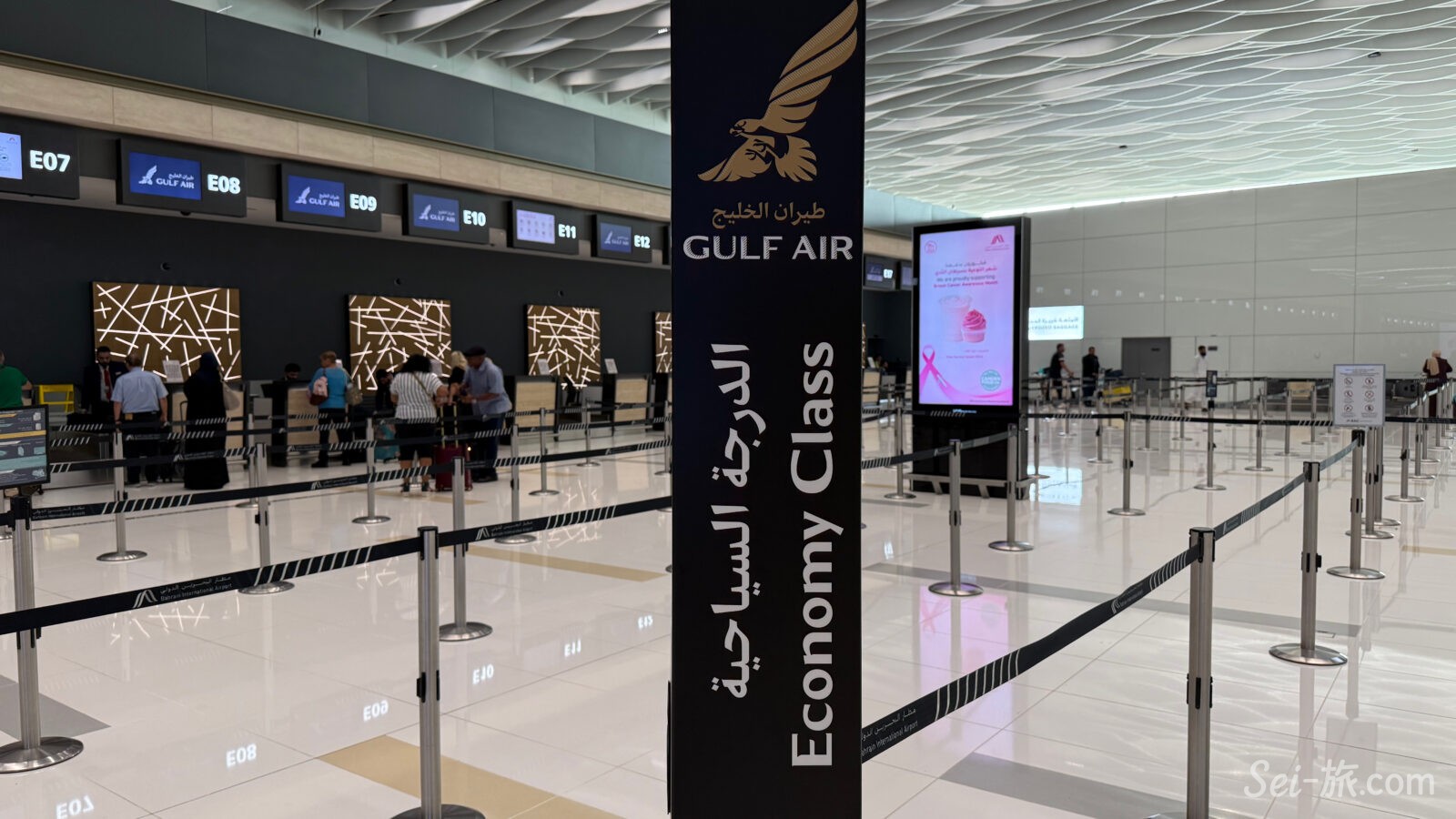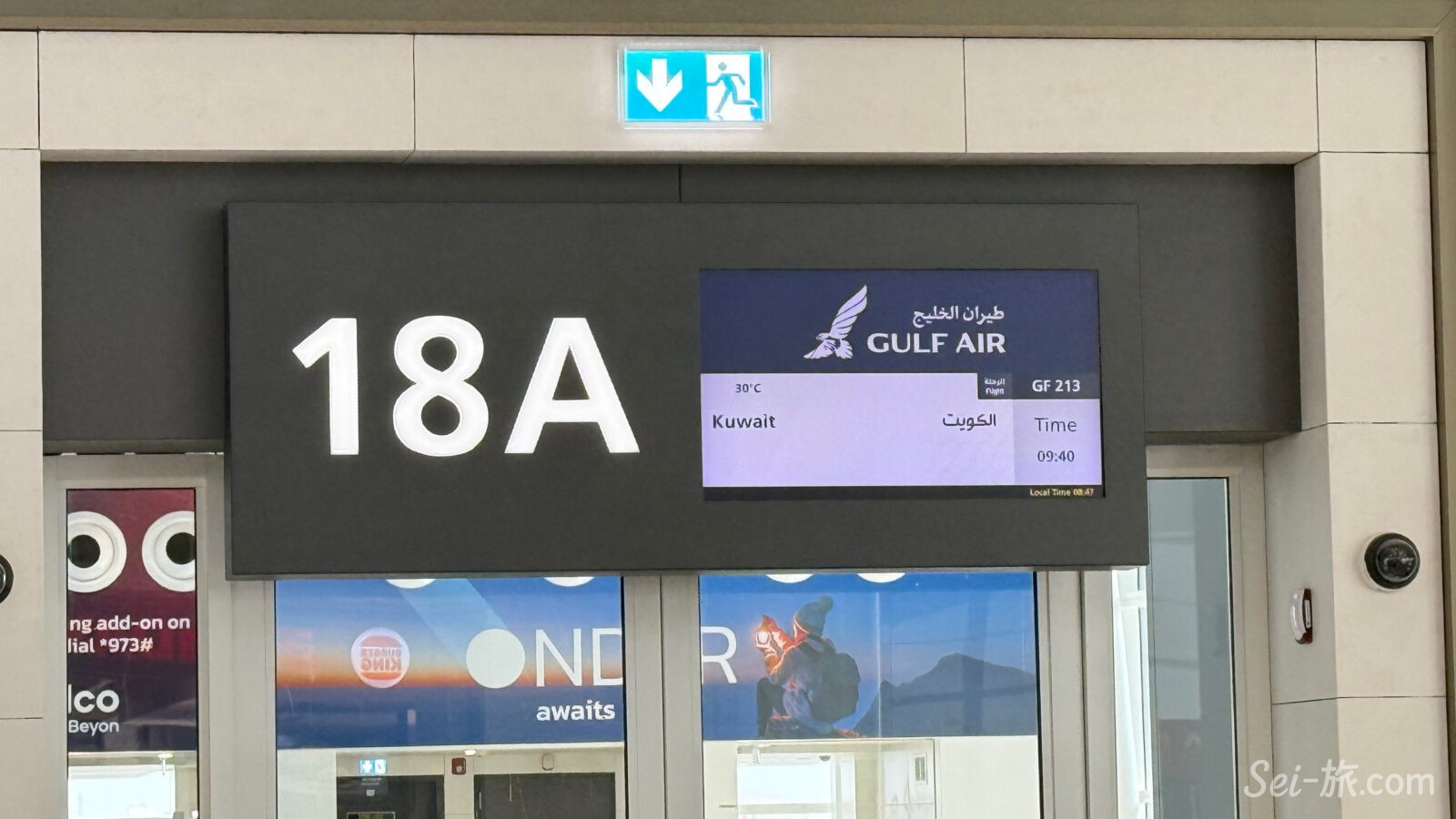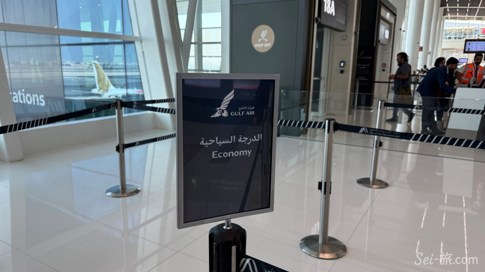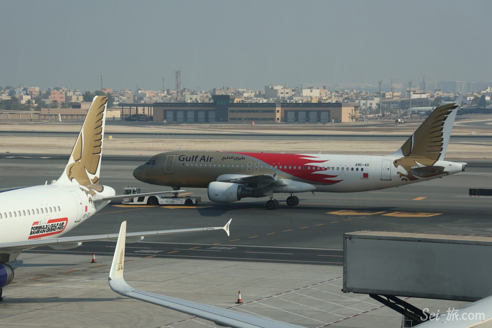 フライトはガルフエア。歴史あるバーレーンの国営航空。