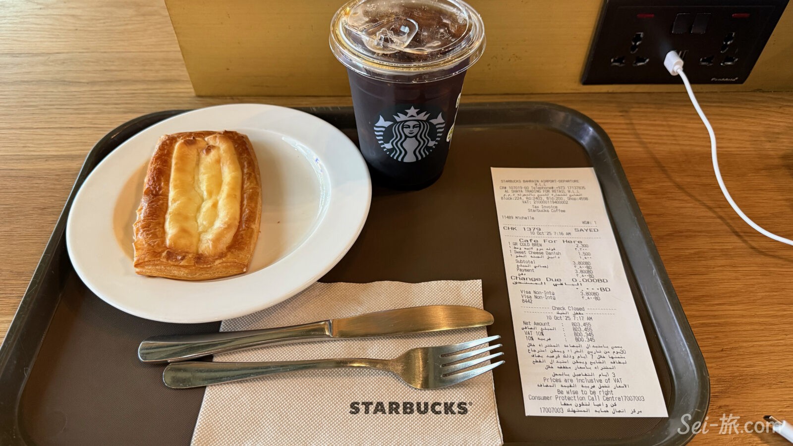 美味しいクリームディニッシュにミドルコーヒーだったけど、なんと3.8ディナール。