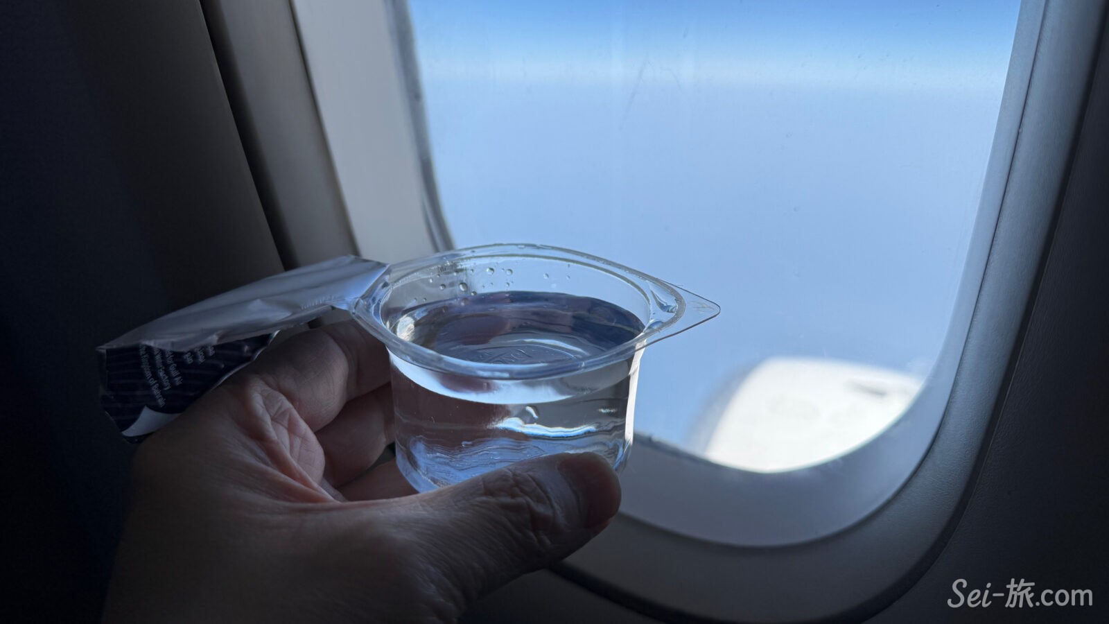 さて、いくらフライト時間が短くても国際線なので機内食どうかな・・・と、期待してたら、ワッフルのようなパンをいただきました。