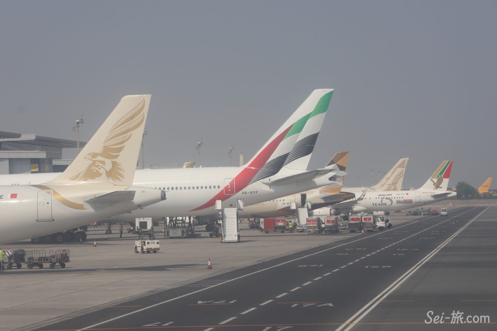 おや、エミレーツの尾翼。まあエミレーツ航空なら就航してるよね。