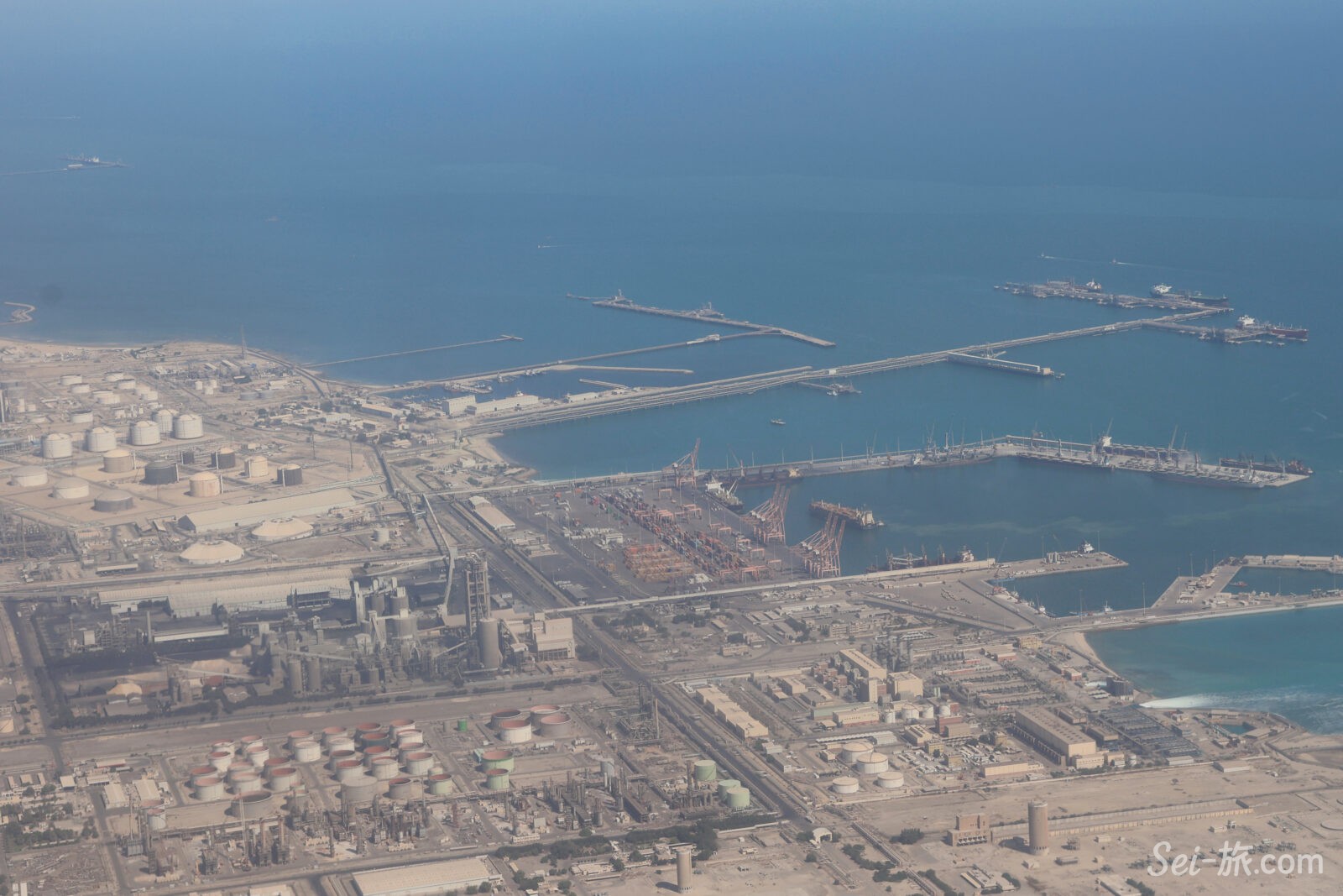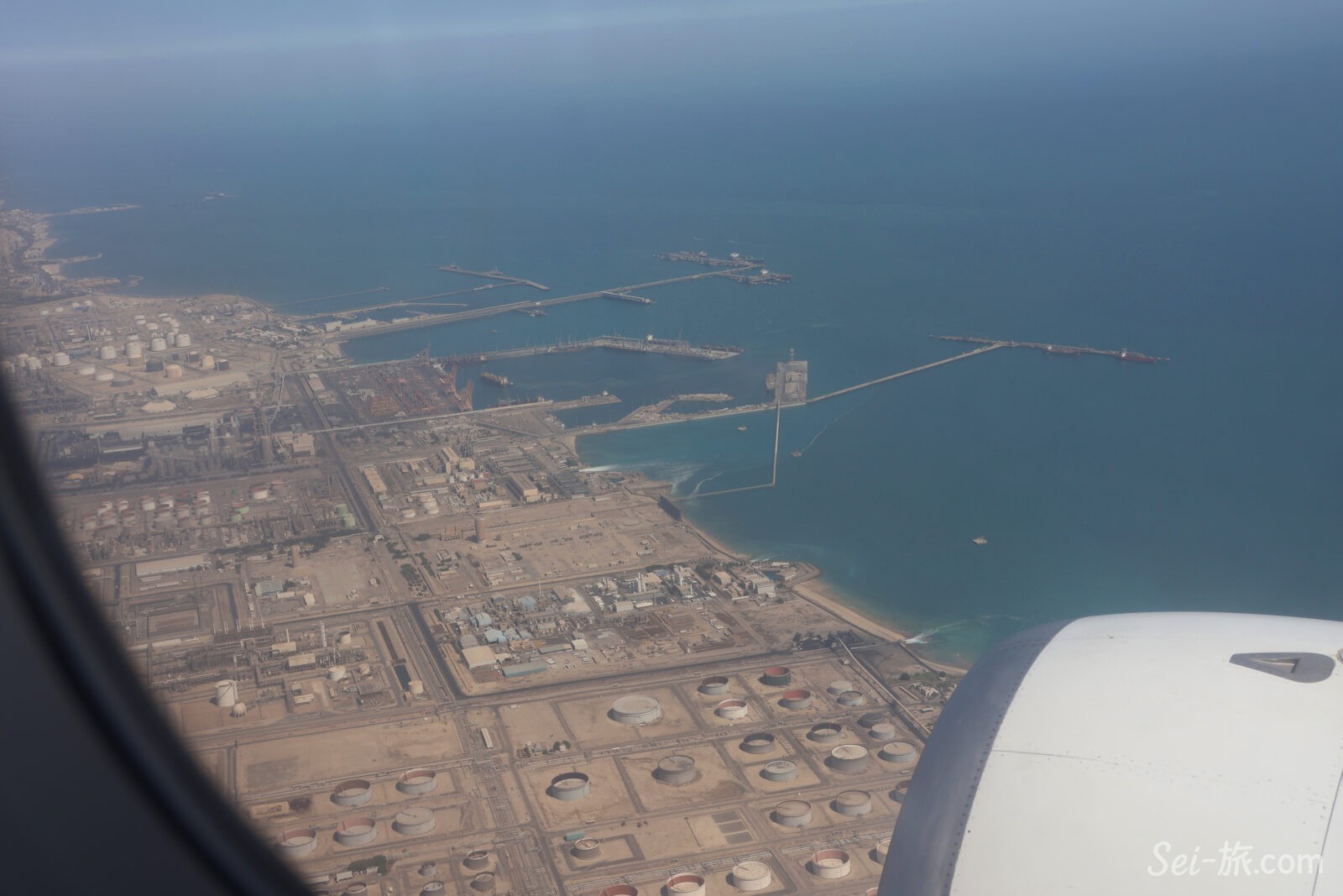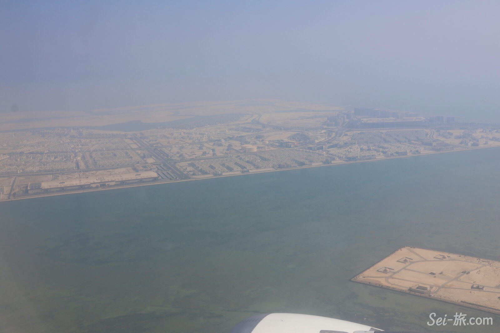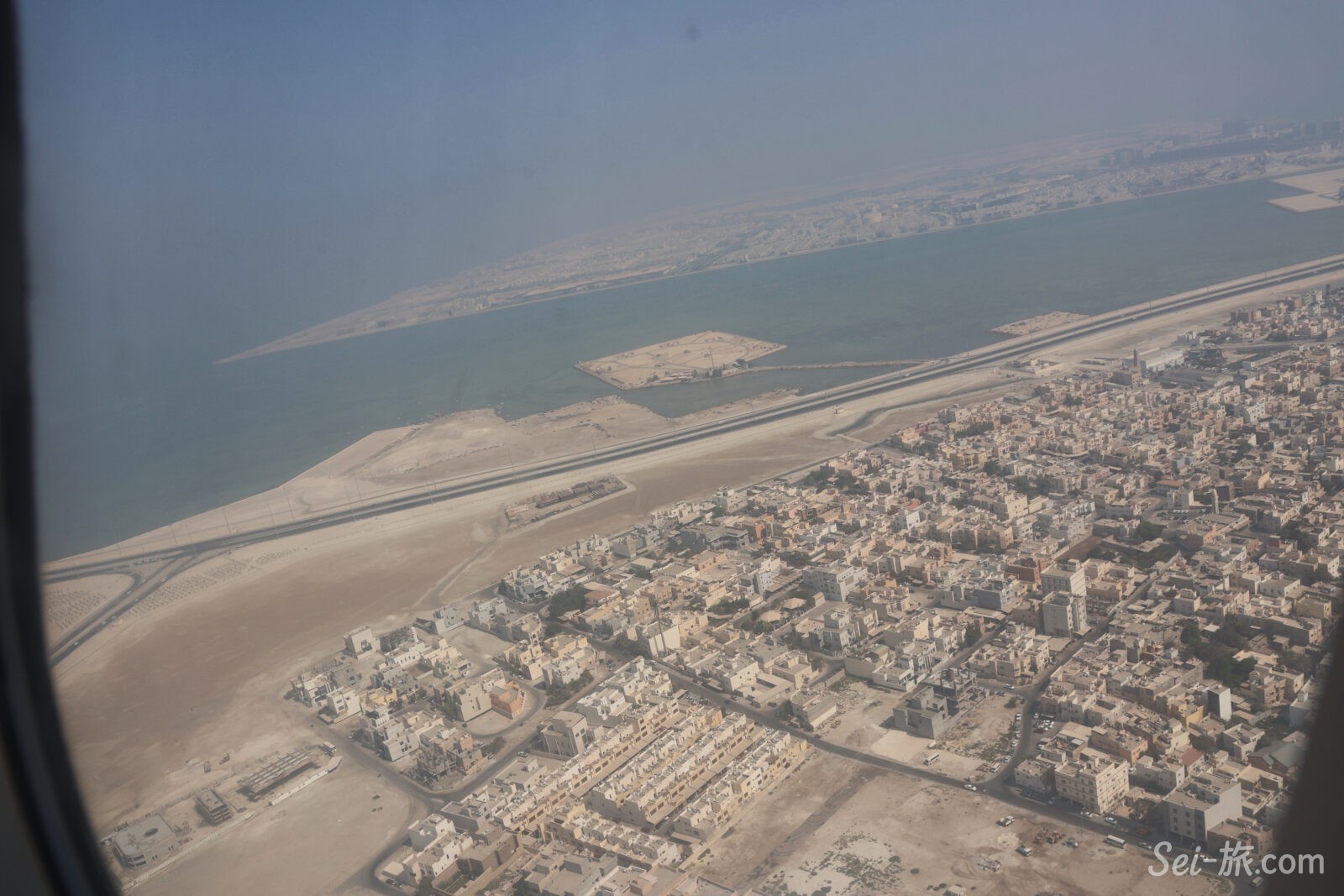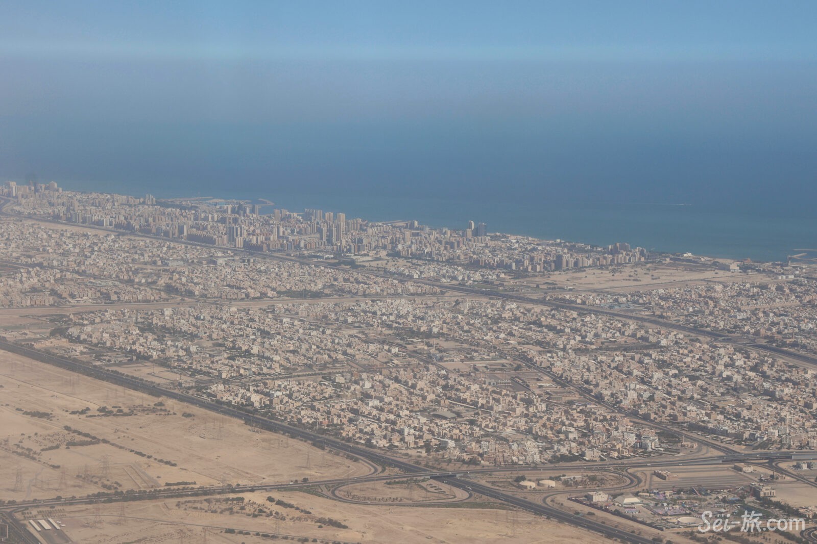 平べったい砂漠に街が造られ、そのままペルシャ湾岸に接してる風景。