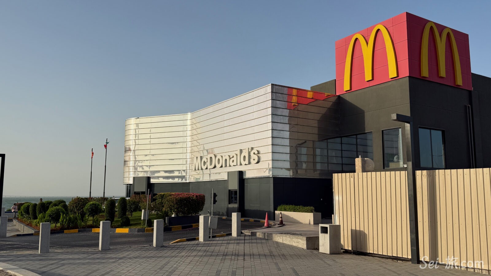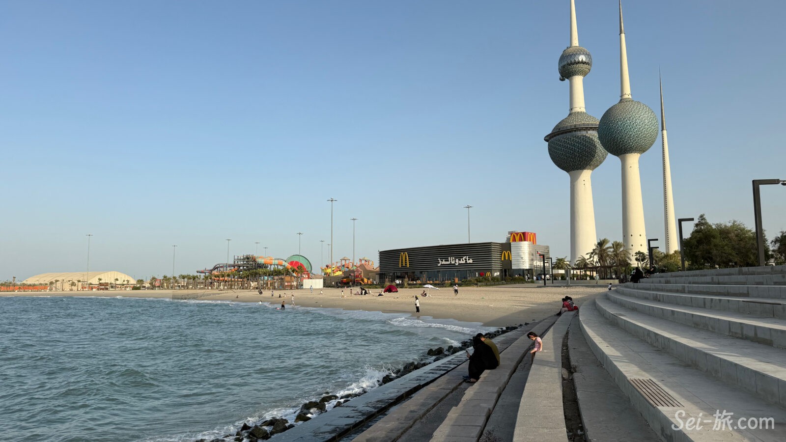 でも、おかげで、クウェート・タワーと、ペルシャ湾の浜辺と、「マクドナルドペルシャ湾岸店」のすべてが入る構図がそろいました。
