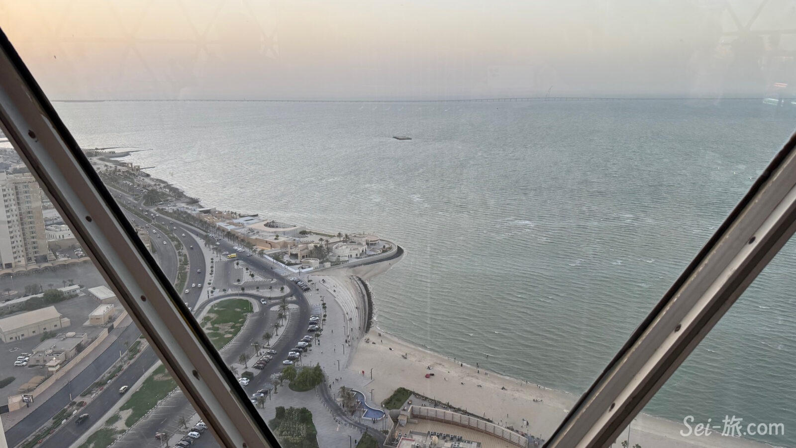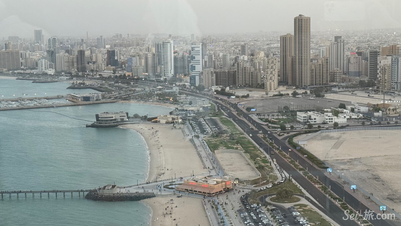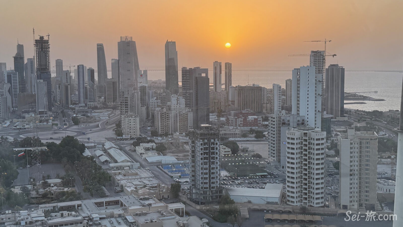 薄暮に煙るペルシャ湾とクウェートの街並みを拝めるかな・・・