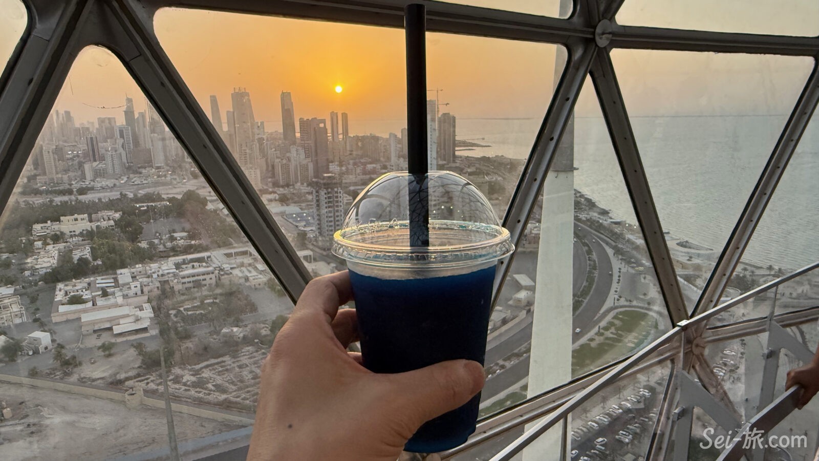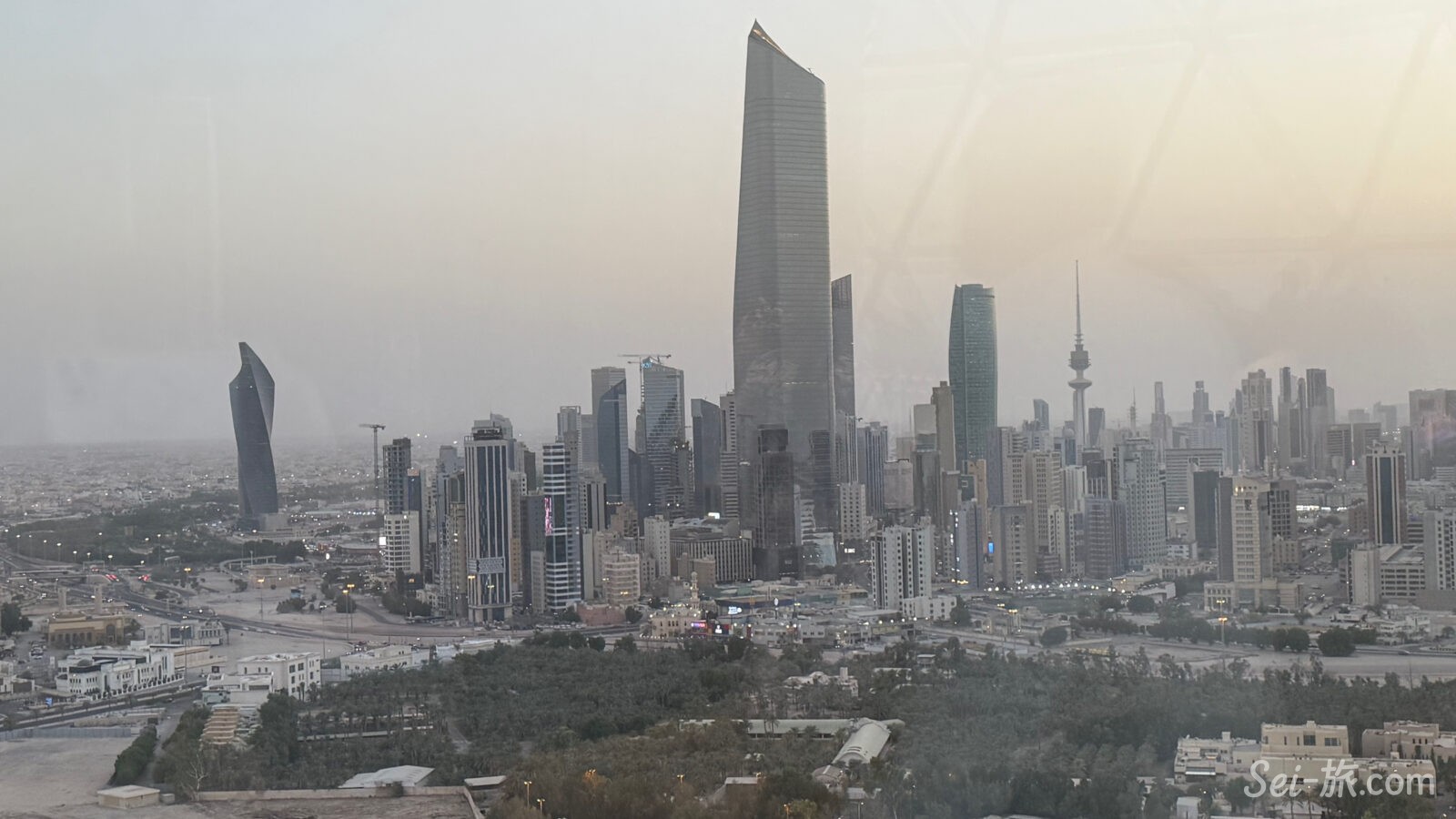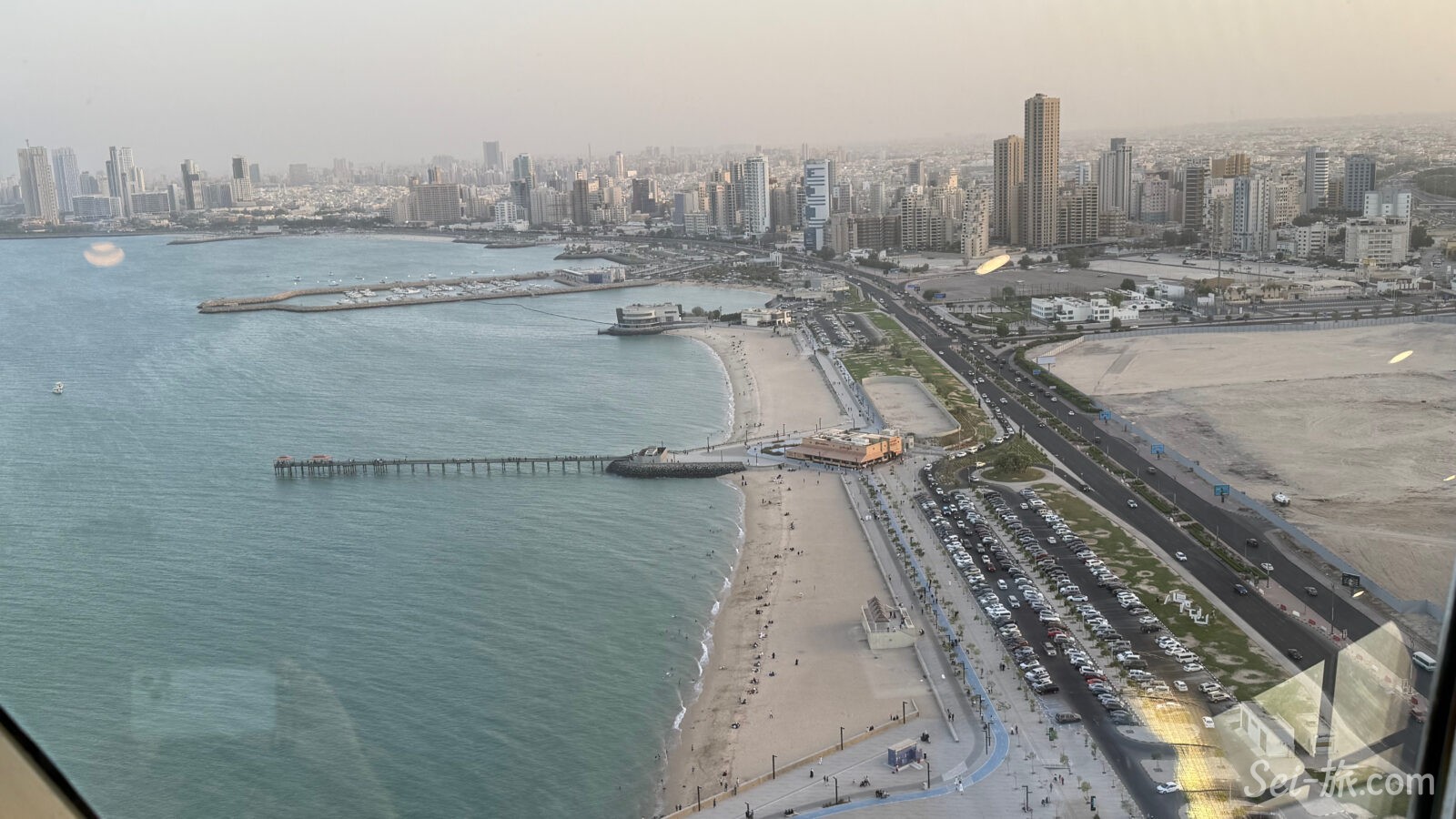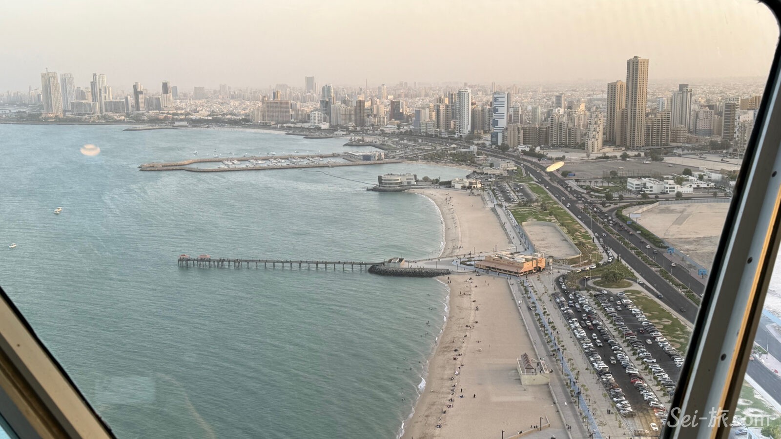 薄暮に煙るペルシャ湾とクウェートの街並みを拝めるかな・・・