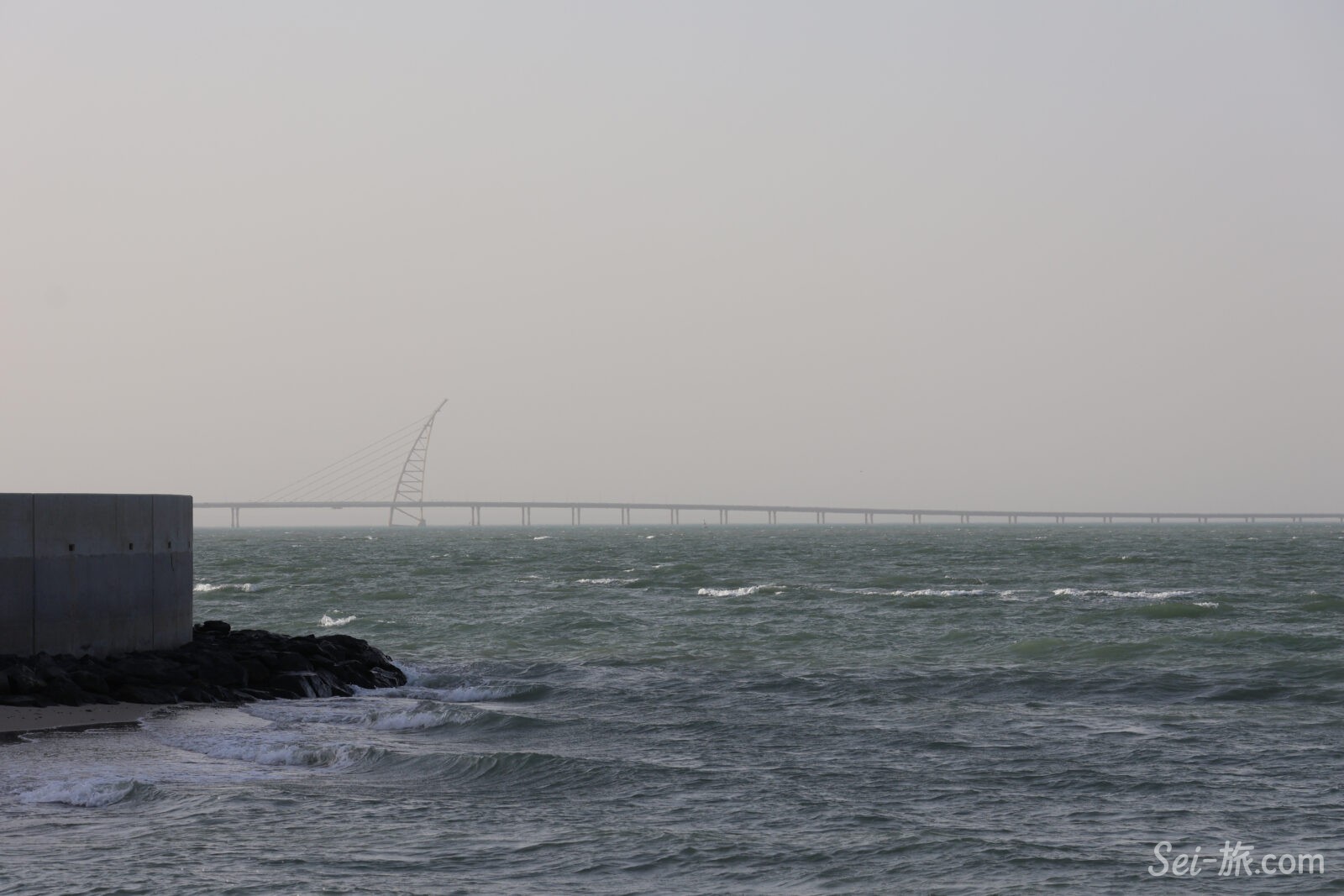 沖を見れば、クウェート湾にかかるクウェートブリッジ。