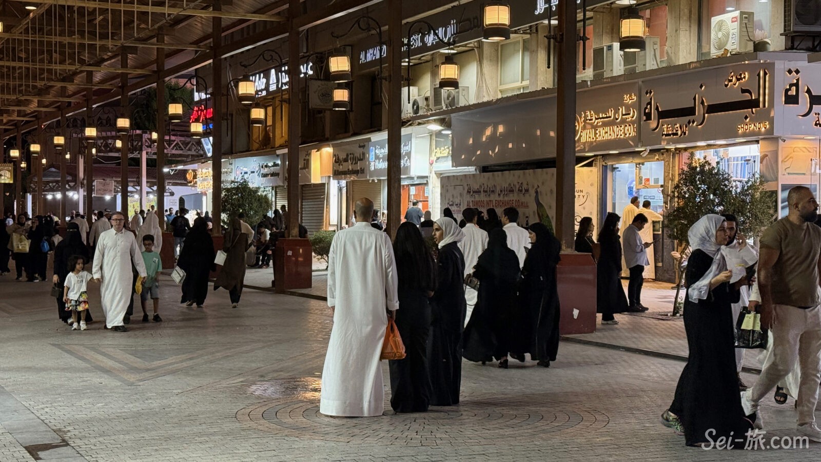 午前1時になっても談笑の笑みがたえないスーク・アル・ムバラキーヤ。