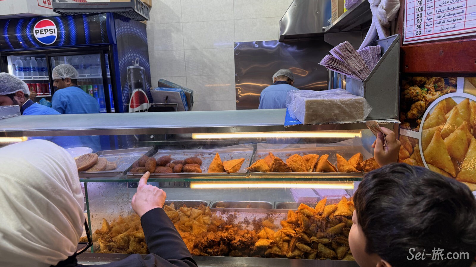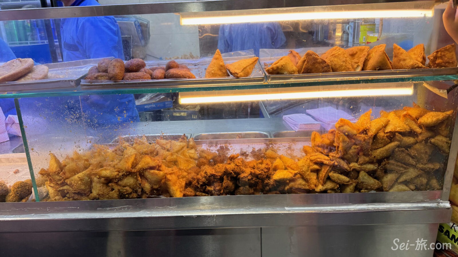 ショーケースに並ぶ三角形の揚げ物は、やはりインドでよく見る「サモサ」だろうか。