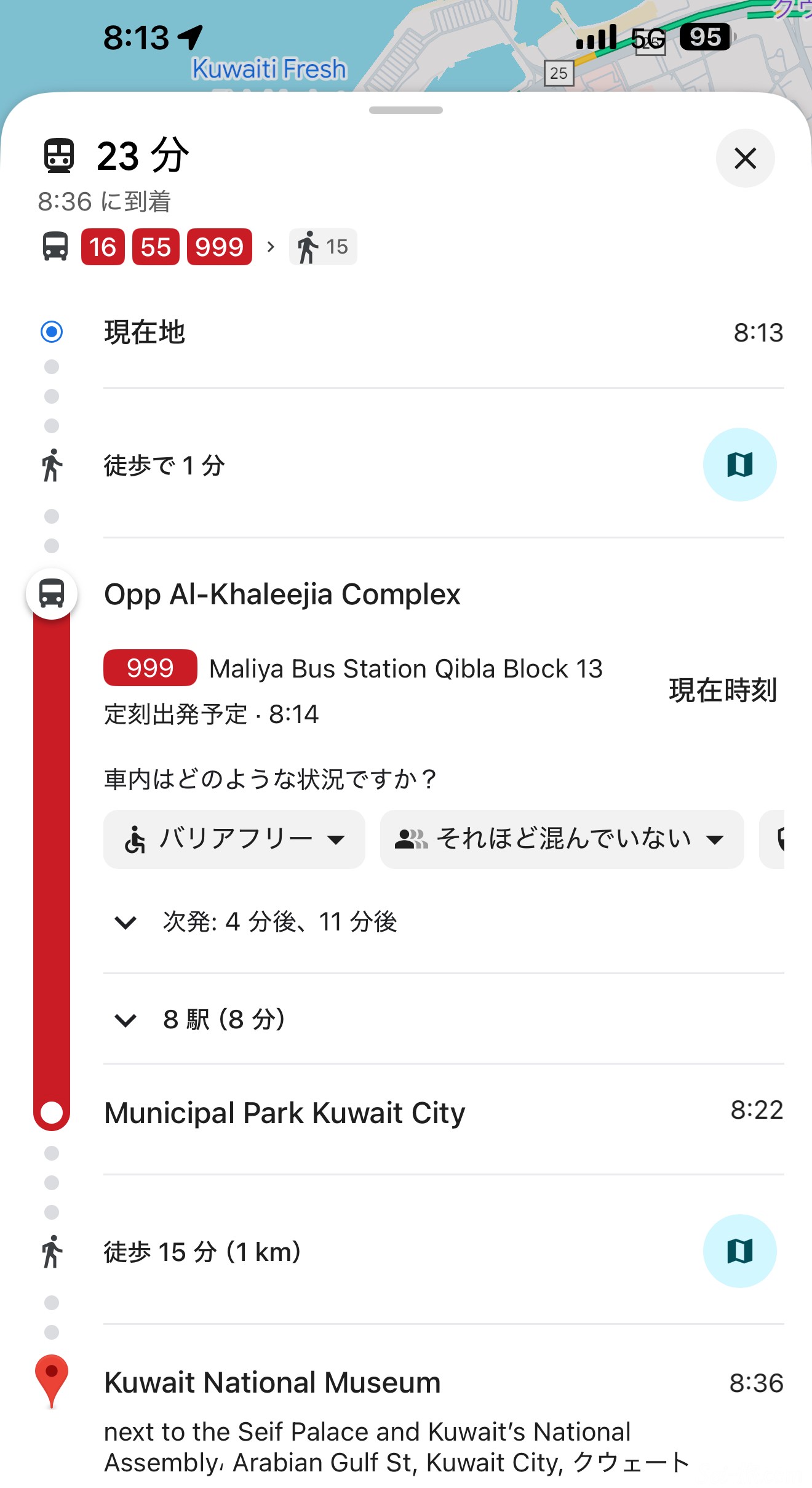 クウェートシティは、完璧なまでにバス路線はGoogleマップと連動している。