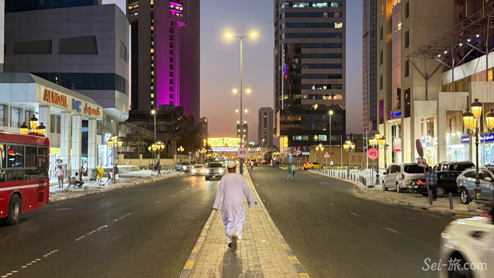 おそらくライトアップされているであろう街並みを眺めたくて、スーク・アル・ムバラキーヤまで、暮れゆく空の下をゆっくり歩いてみる。