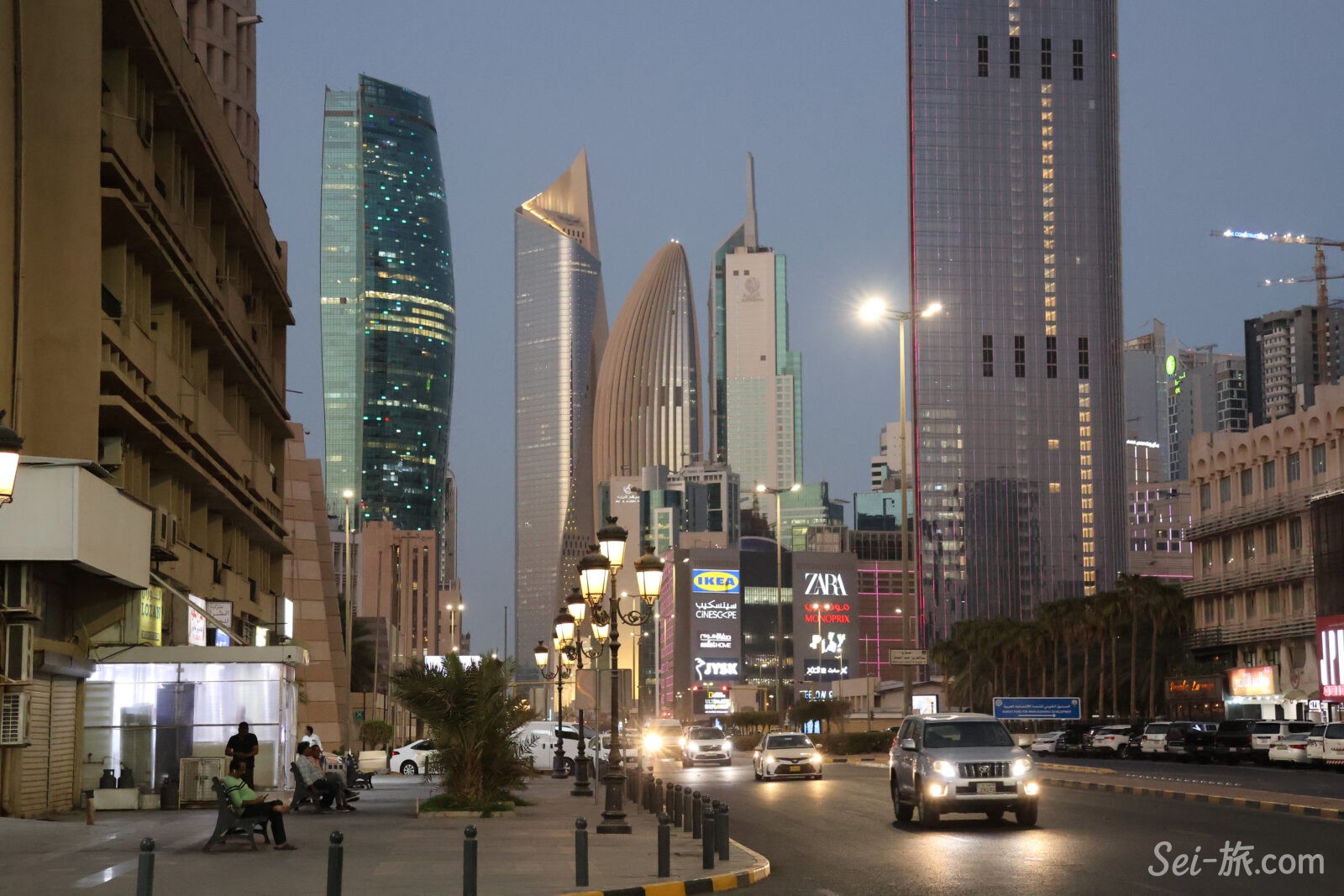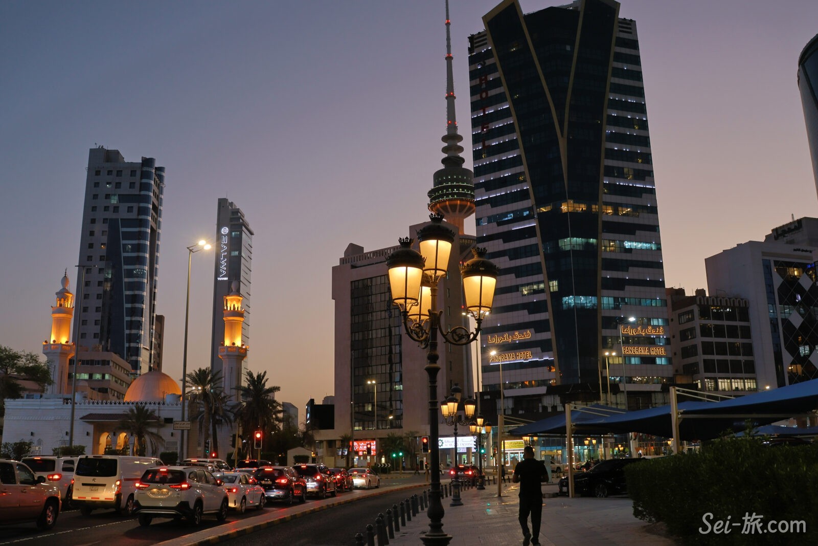 ライトアップされたクウェートシティ&祈りを聞きながら頂くチャイ