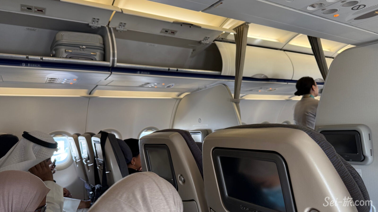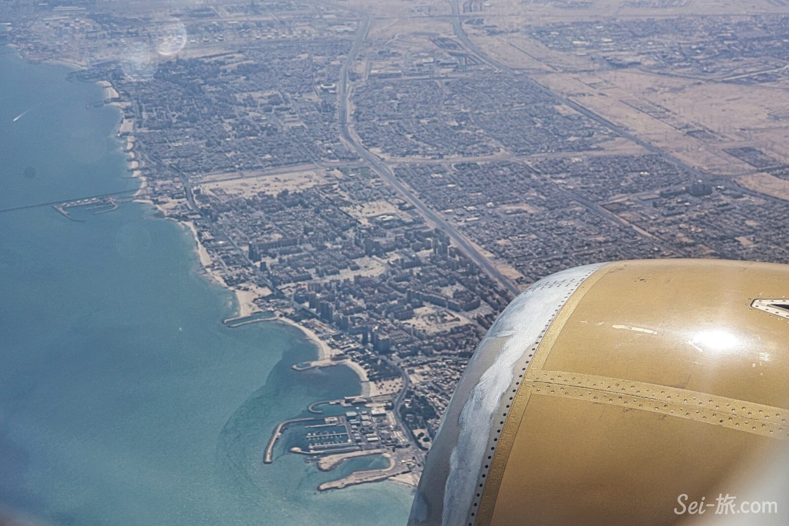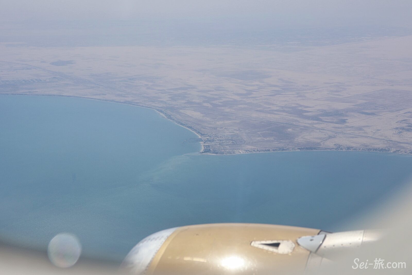 窓からアラビア半島を眺めたくて、太陽光が差し込むのを覚悟で確保したF席。