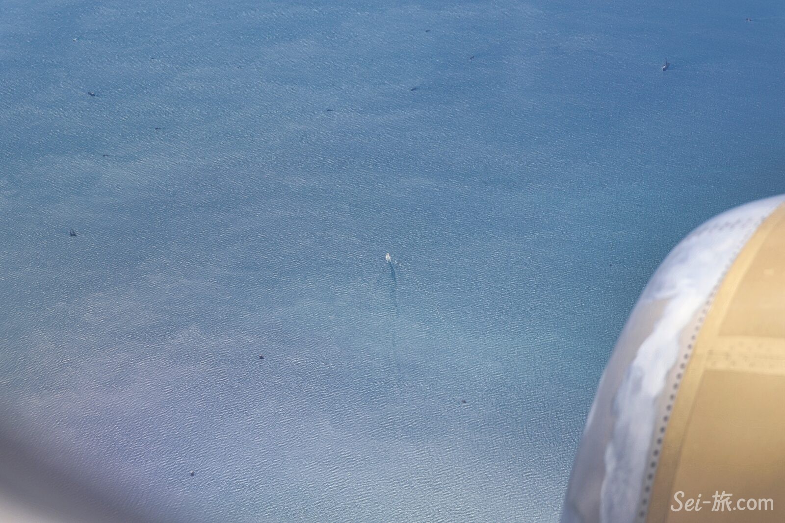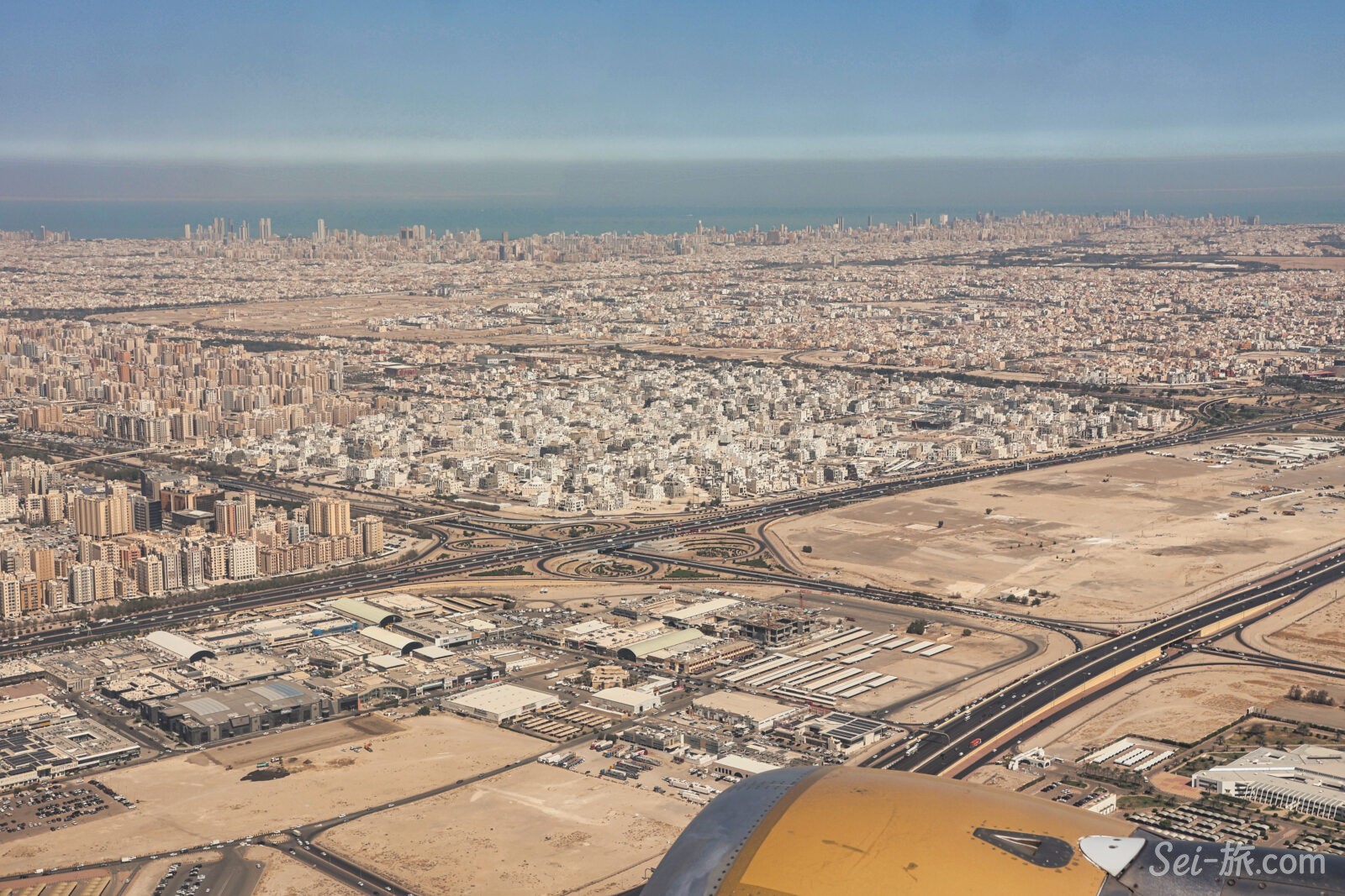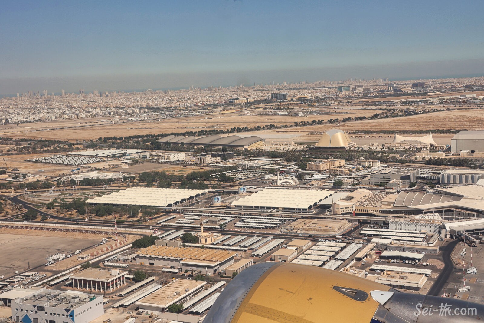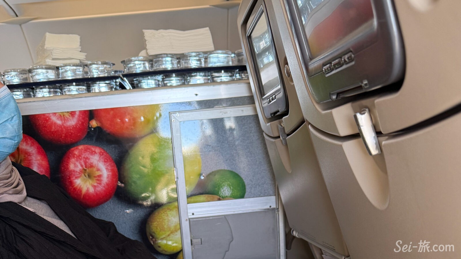 窓からアラビア半島を眺めたくて、太陽光が差し込むのを覚悟で確保したF席。