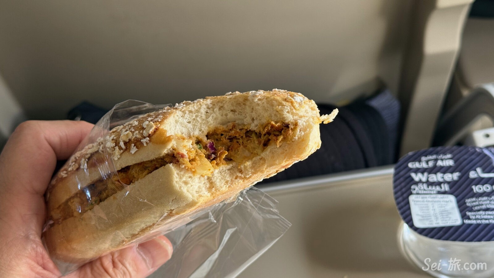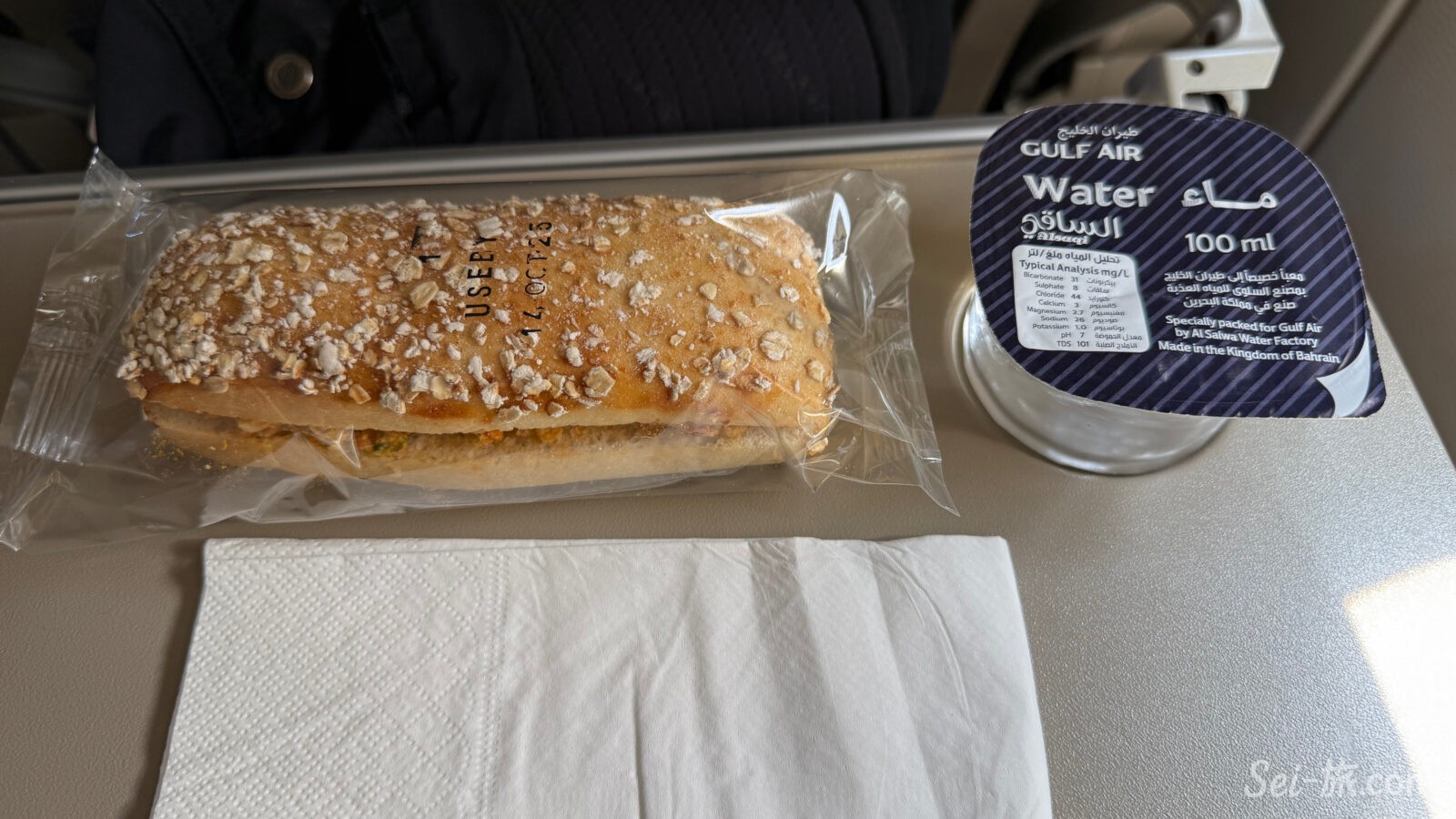 美しいペルシャ湾とアラビア半島に感嘆していると、軽食が配られはじめました。