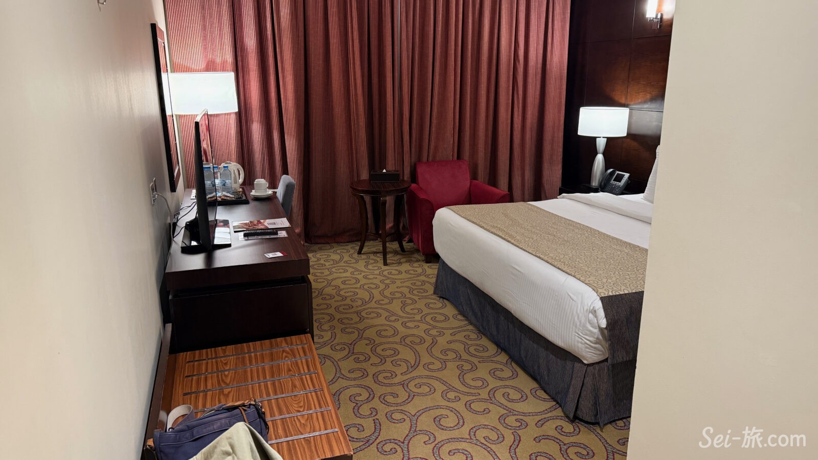 ホテル代が高騰しているご時世で、この経済都市ドーハで安いビジネスホテルが見つかるかどうか定かではなかったが、空港からクルマで10分の好立地に1泊7,000円。