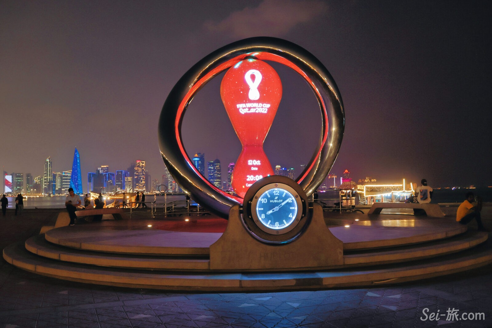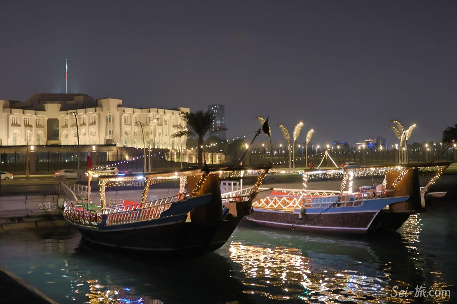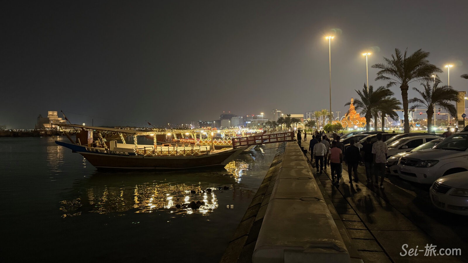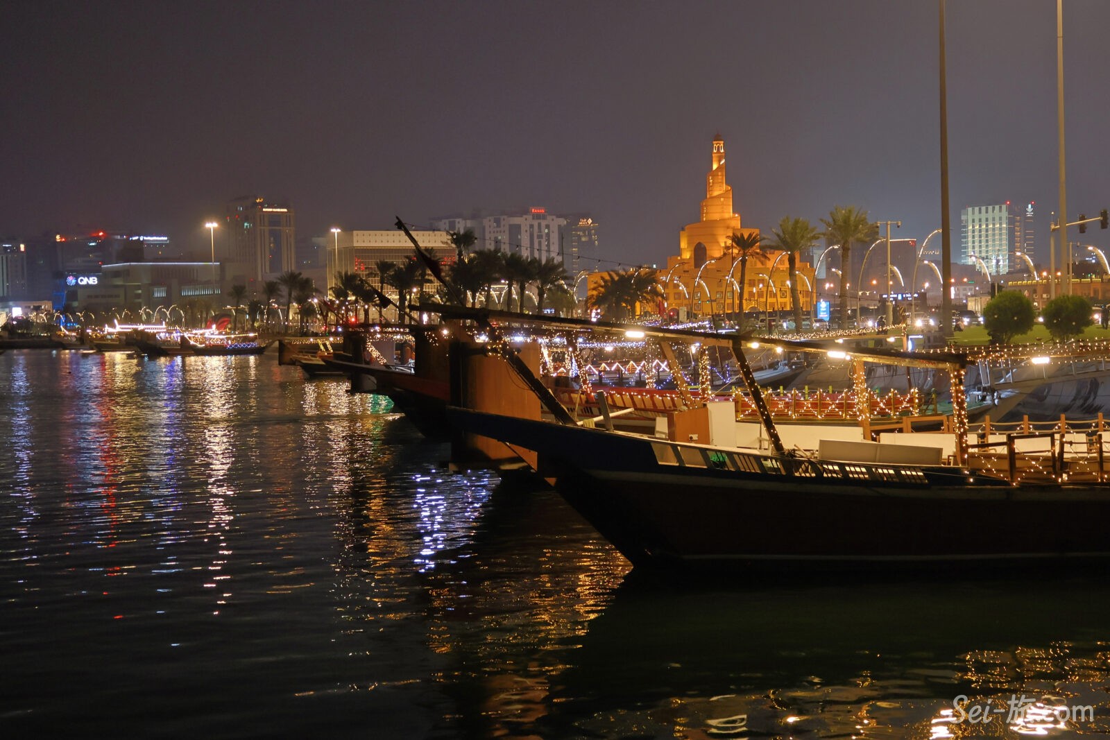 視線の先、ドーハ湾の向こう側には、光をまとった摩天楼。