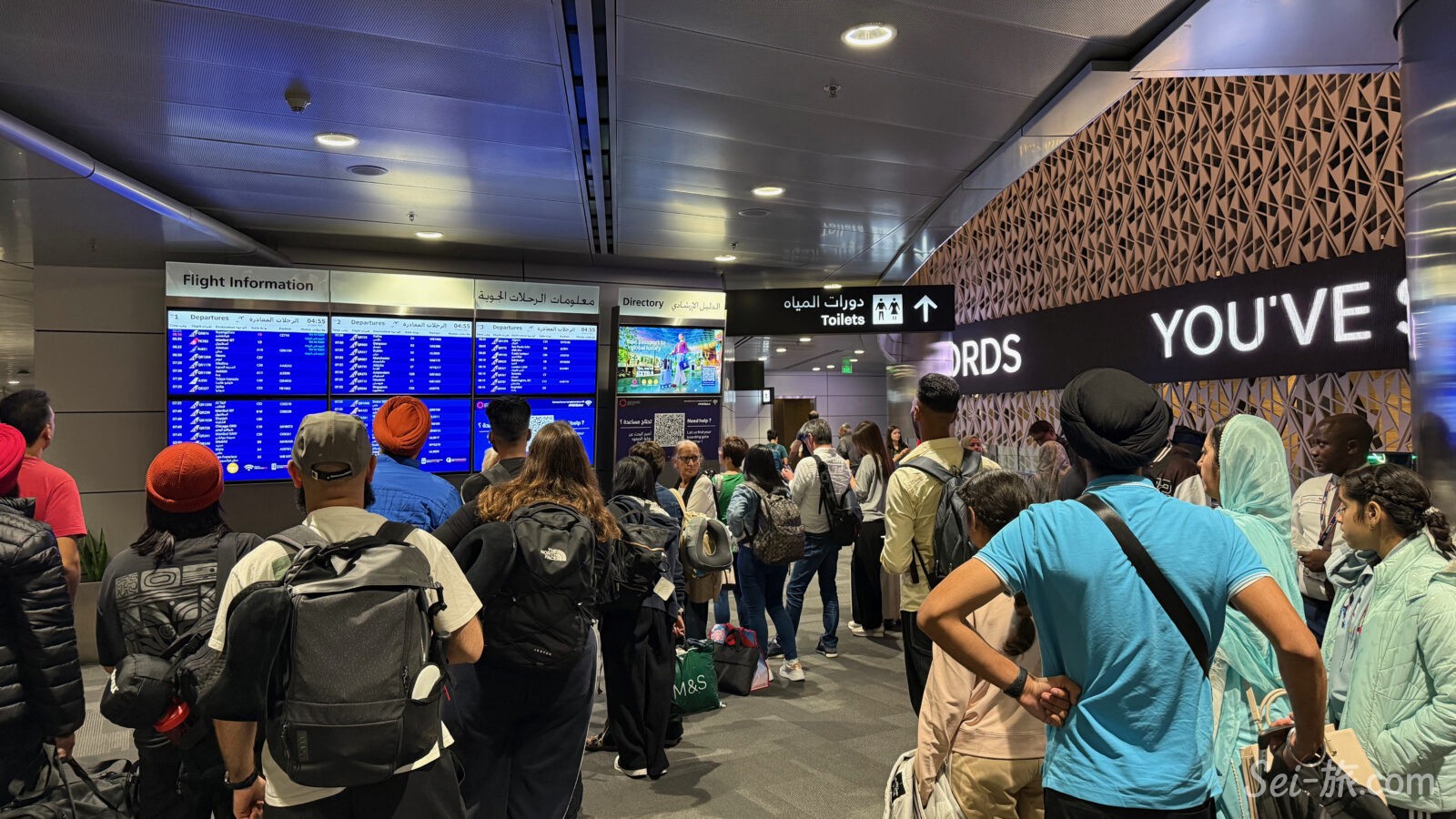 これで、旅人は乗り継ぎ便のゲートを確認するんです。