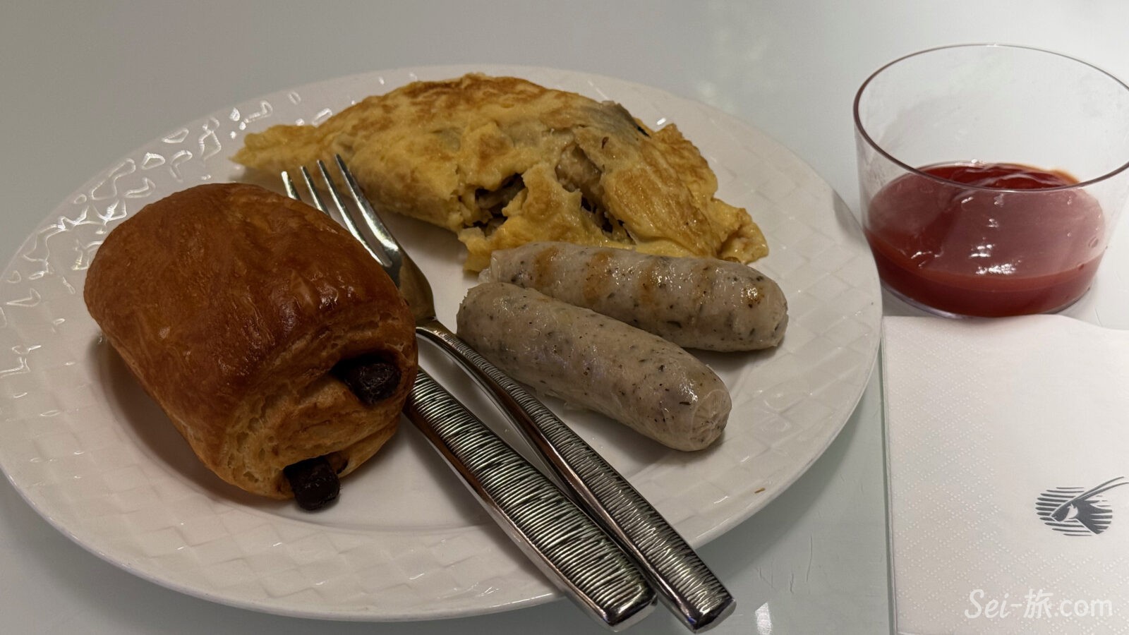焼きはじめた後、「あっ! 機内食の朝食もオムレツだった」と思い出す始末。