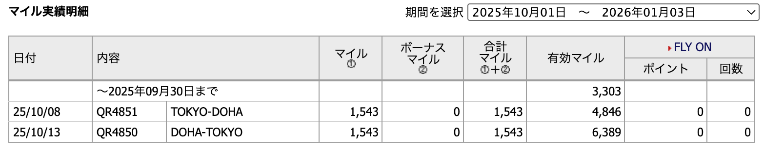 さらにうれしいことに、格安チケットであるにもかかわらず、しっかりとJALのマイルをいただけました。