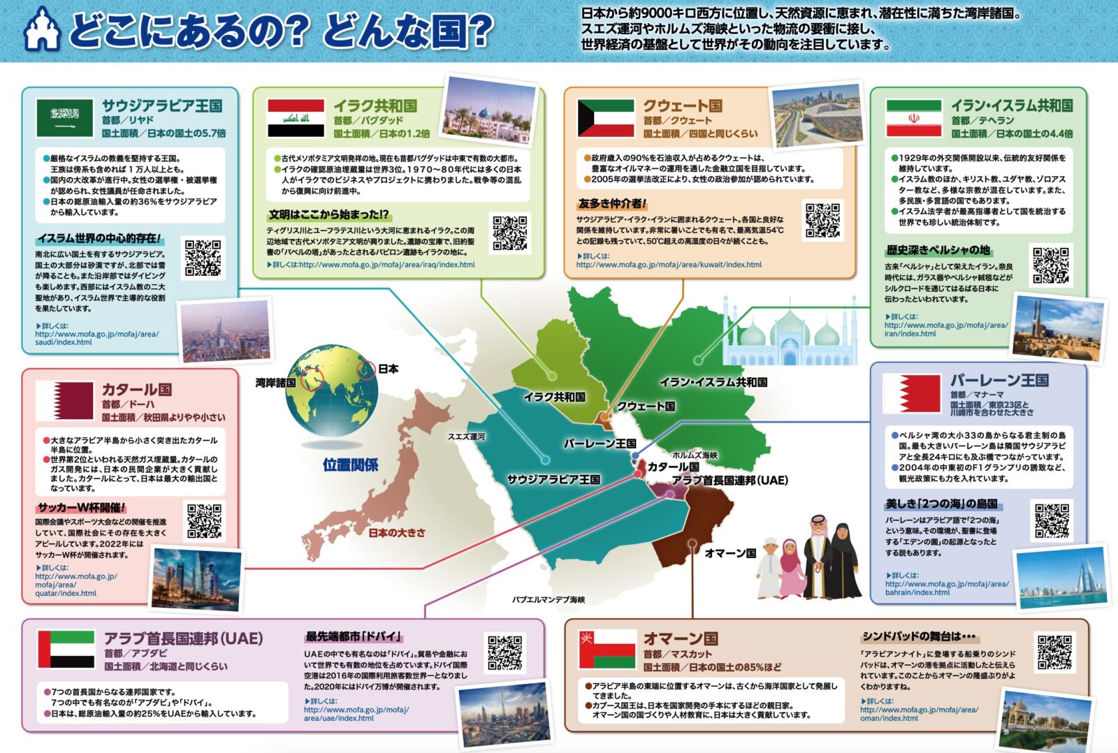 と思っていたら、外務省HPに湾岸諸国の現状や日本との関係をわかりやすくまとめたパンフレットがありました。