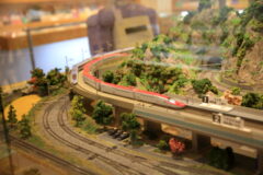 KATO製の「ユニトラック」というレールは、ジオラマづくりではない、床に直接組み立てて、子供が遊ぶようなシチュエーションを想定している感じ。
