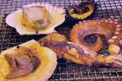 ウミネコに囲まれる天売島の海岸