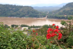 音楽を聴きながら、ラオスの大地とメコン川を見下ろします。