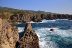 このあたりが、佐渡の北端。海水浴場にもなっている二ッ亀です。