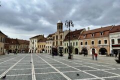 どんよりと低い雲が垂れ込めるブラショフ旧市街の中心「スファトゥルイ広場」。
