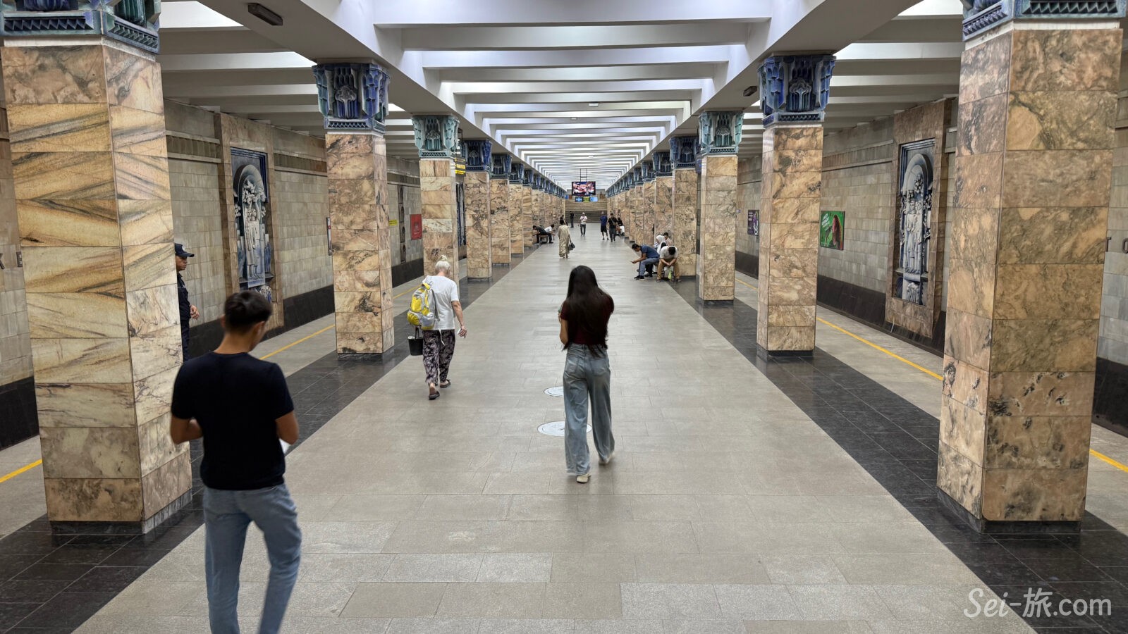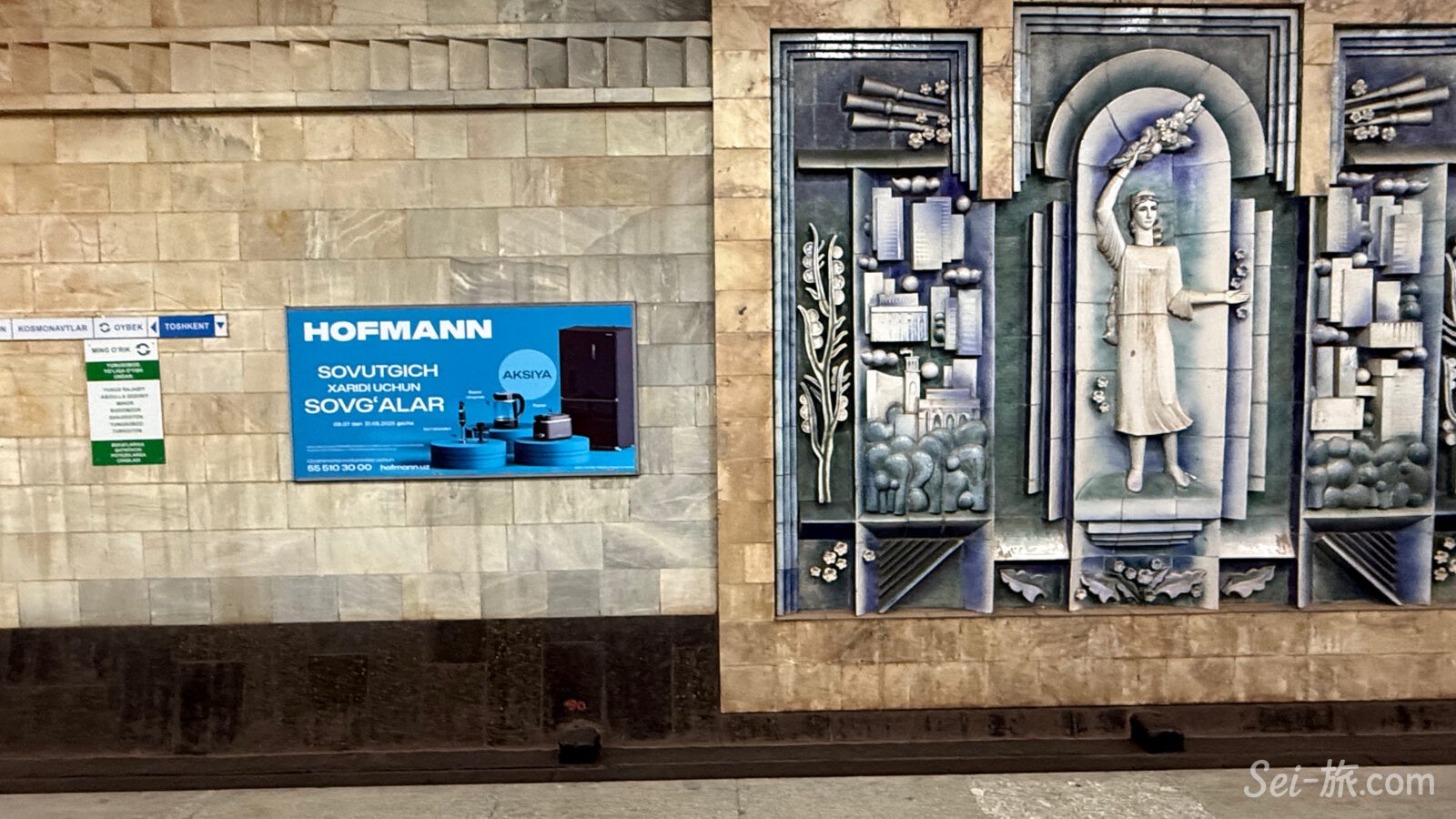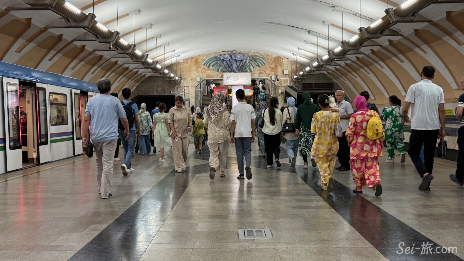 なので、タシケントの地下鉄はエアコンが効いてて避暑地になるということで、アートな壁絵見学目的でいろいろ乗り降りしました。