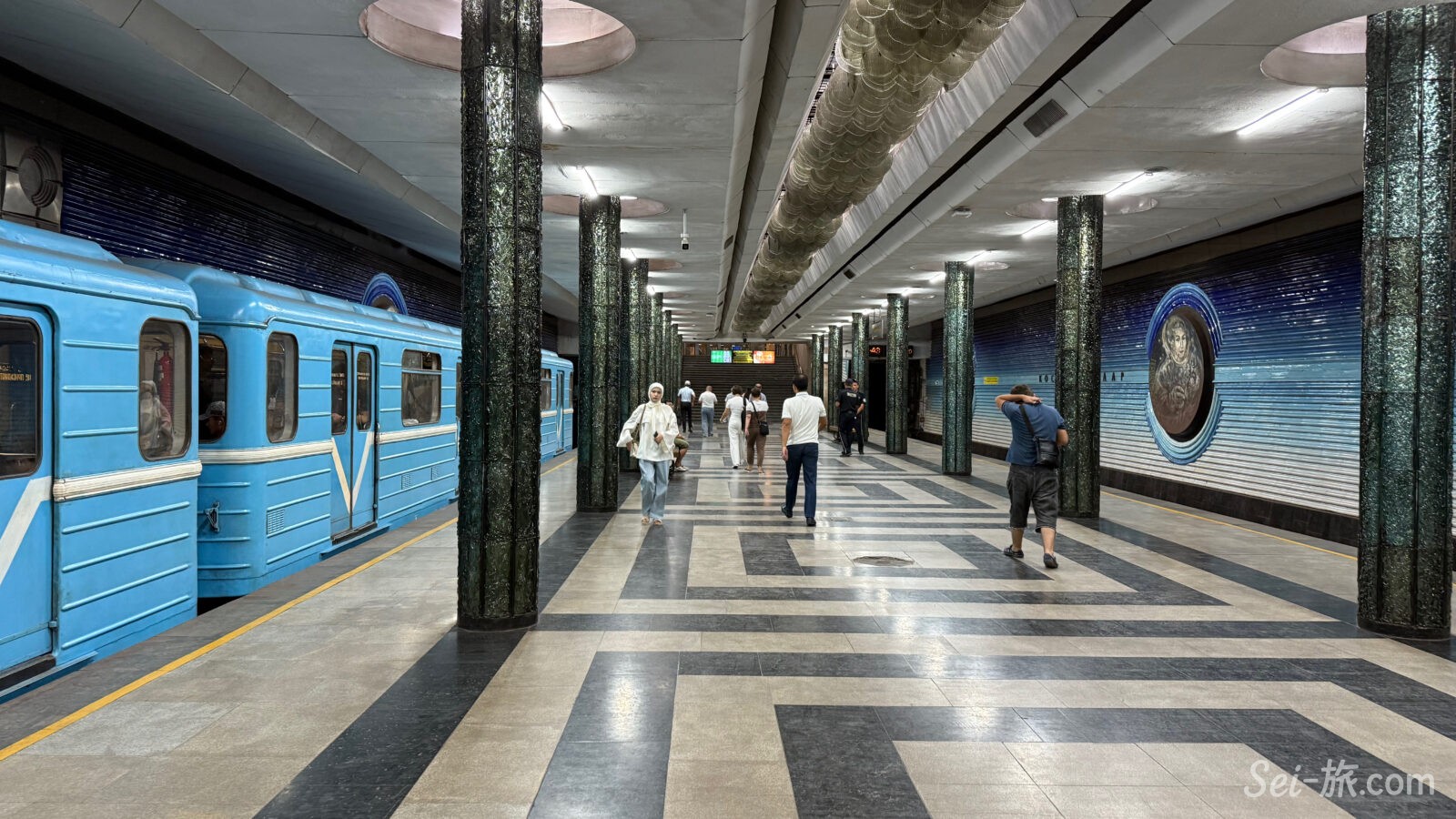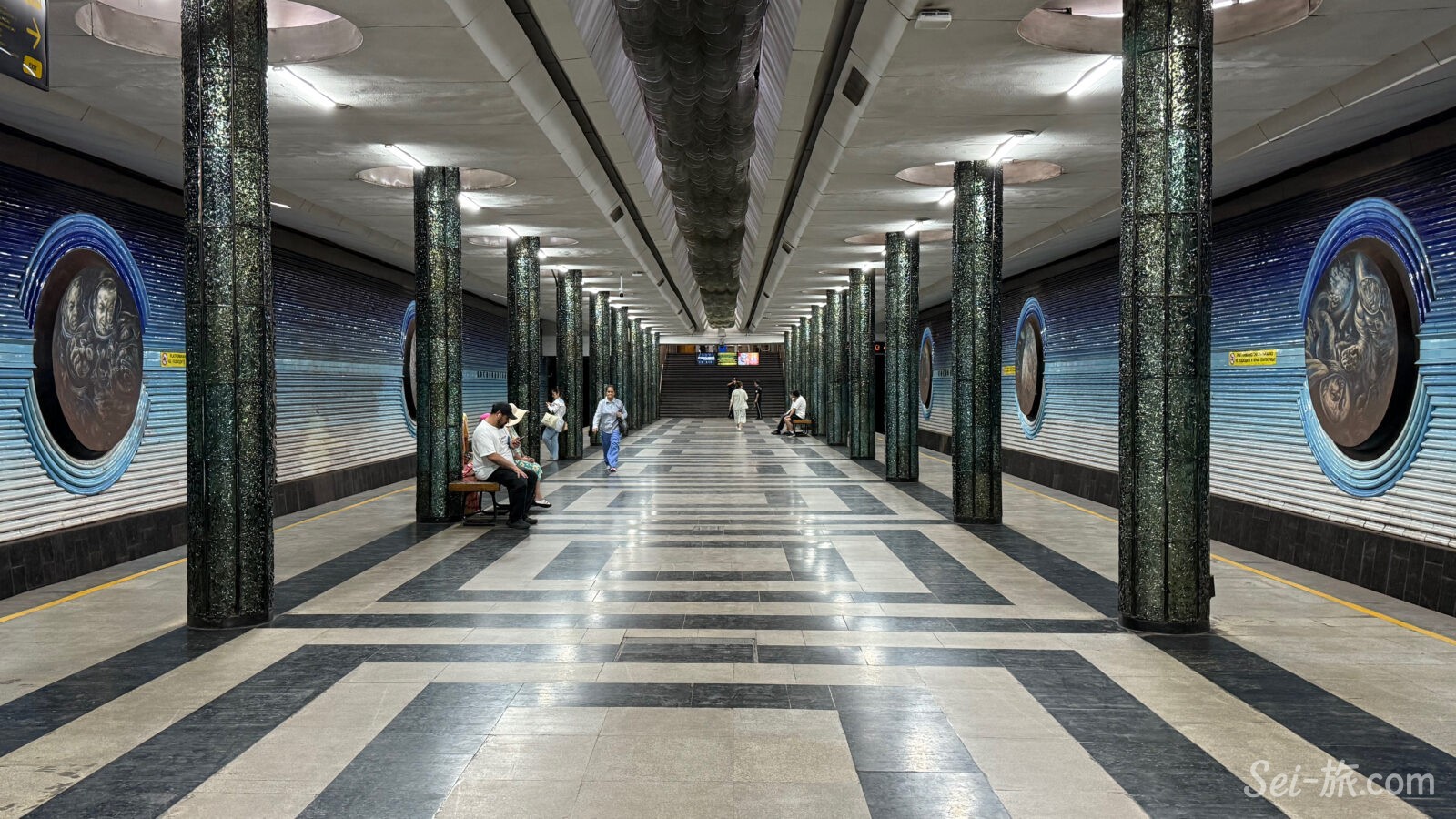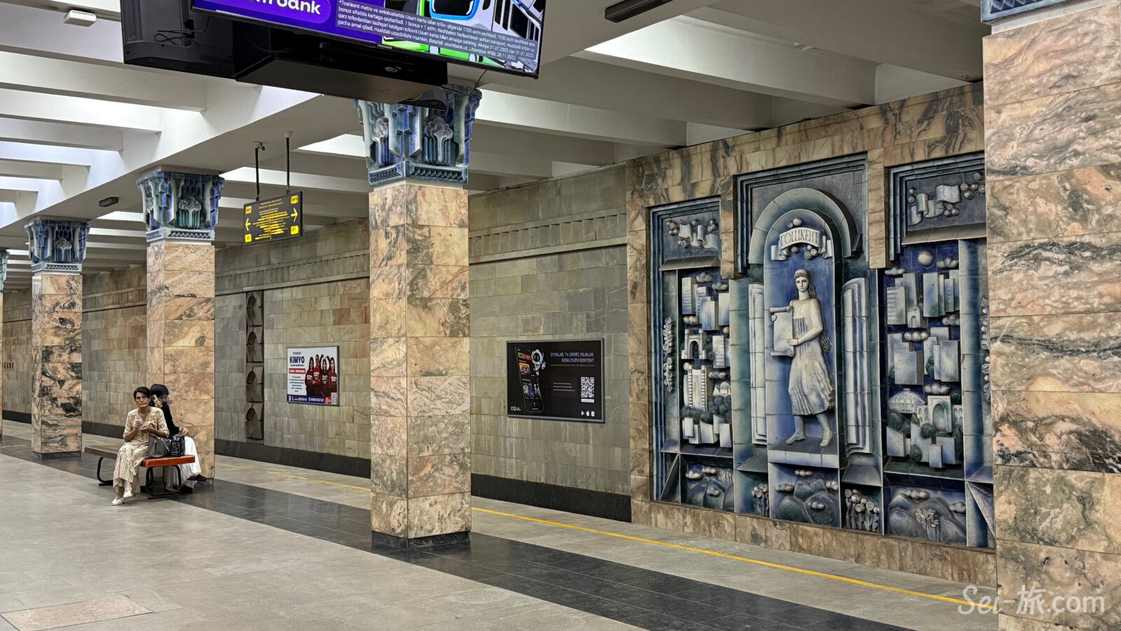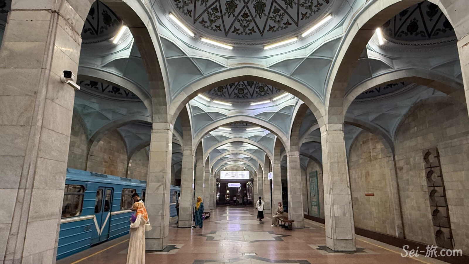 なので、タシケントの地下鉄はエアコンが効いてて避暑地になるということで、アートな壁絵見学目的でいろいろ乗り降りしました。
