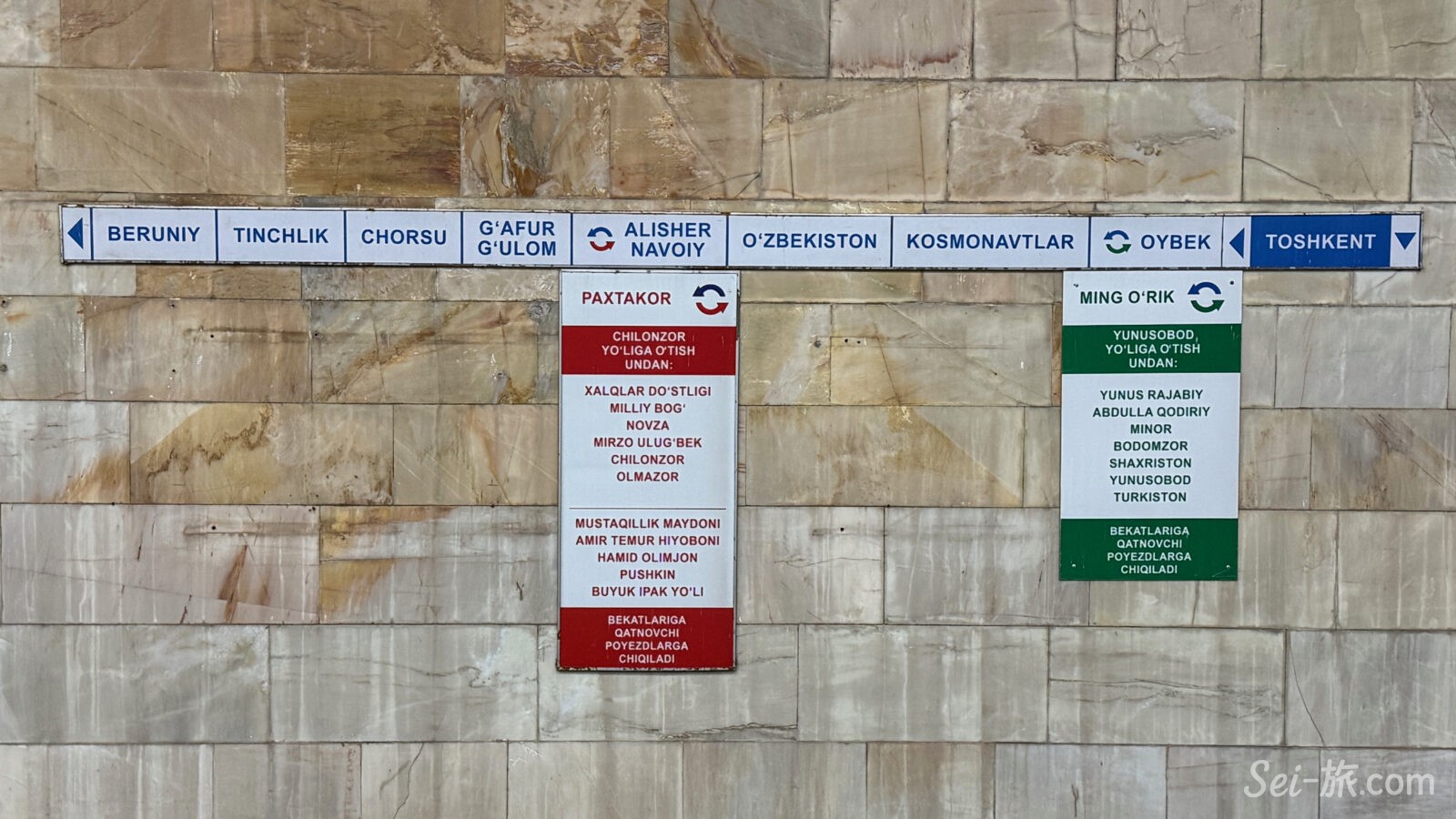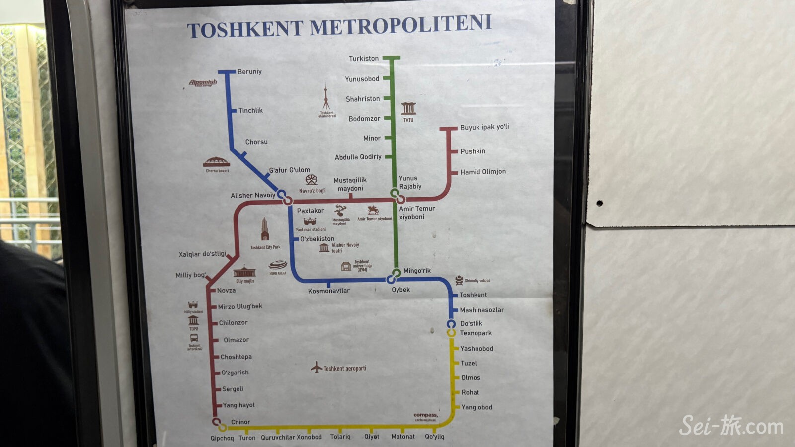 青いのを勝手にブルーラインと呼んでしまいますが、これに乗れば、タシケント駅からチョルーバザールまで一本で行けるみたいです。