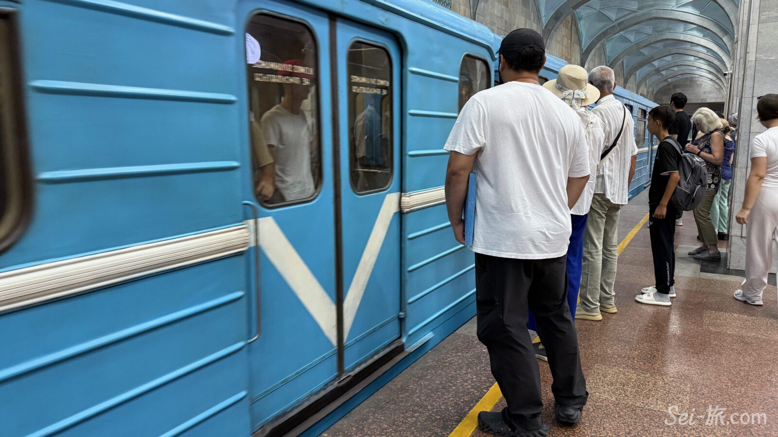 車内は人種のるつぼ状態。なかなか楽しいタシケントの地下鉄です。
