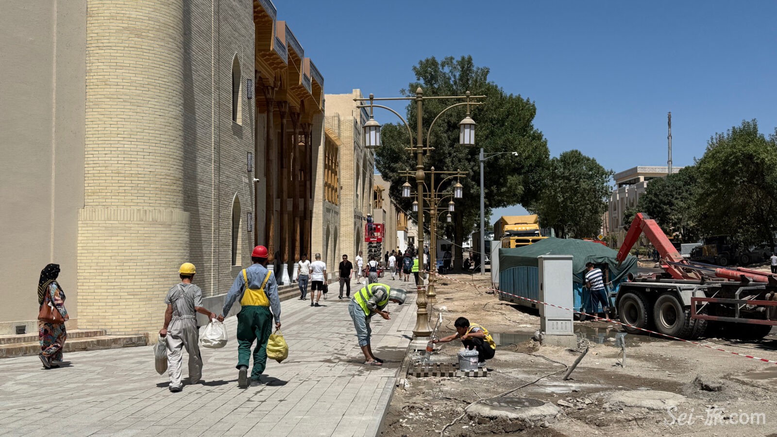 気温38度はサマルカンドよりは低いのに、なんだろ、アスファルトが多いから、その照り返しで体感温度は40度を越えます。