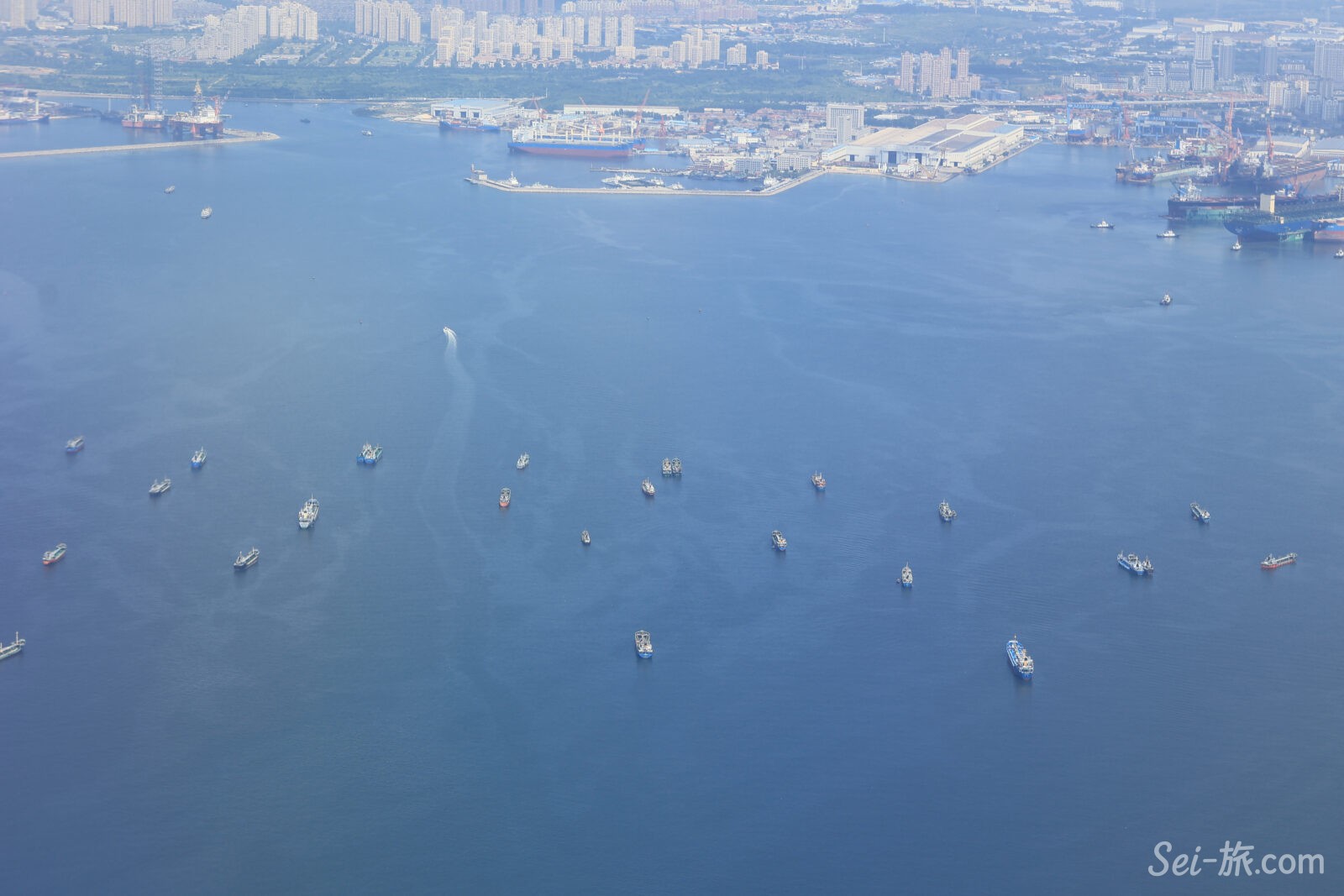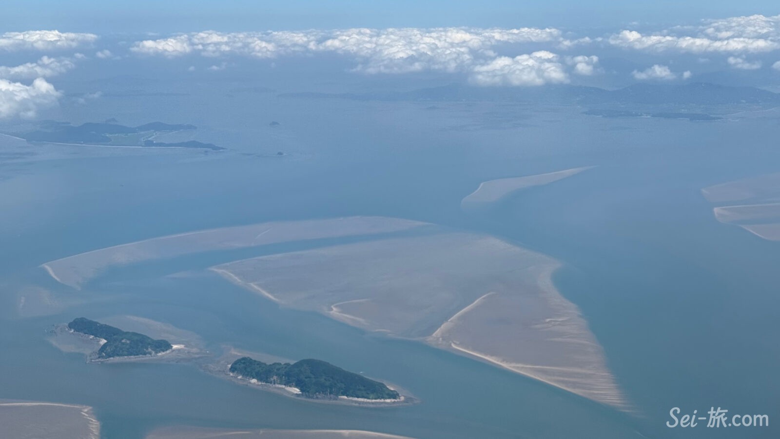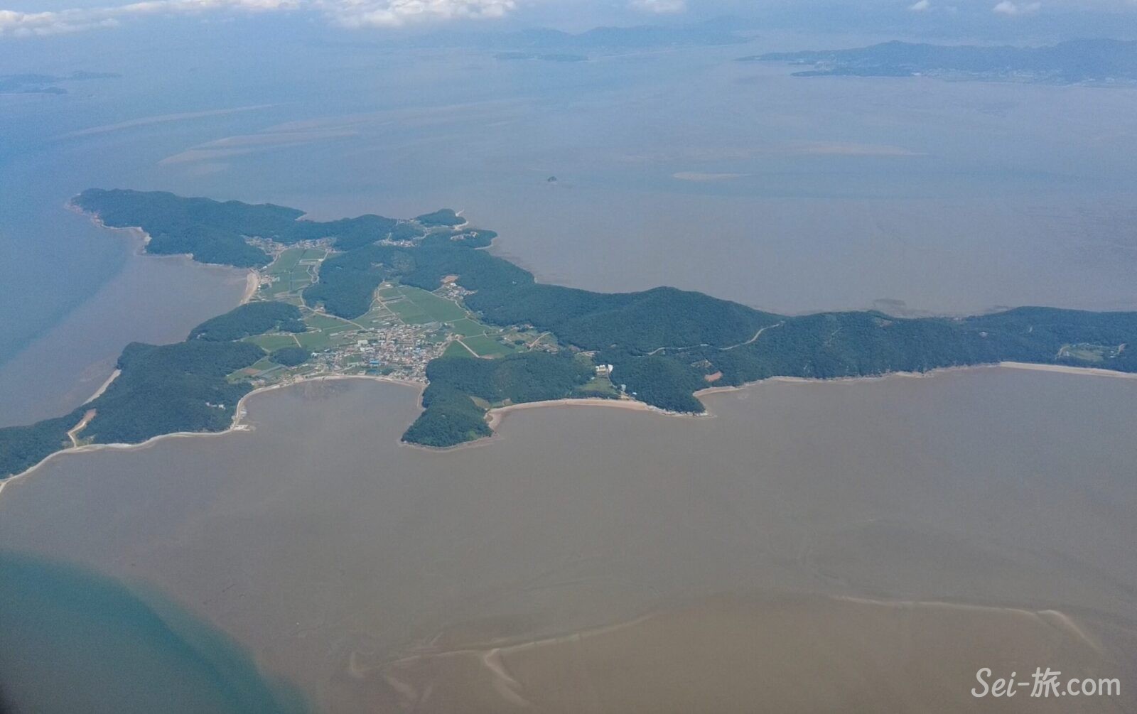 黄海の上空は幾度も往来してるけど、いつも雲をかぶってる印象。