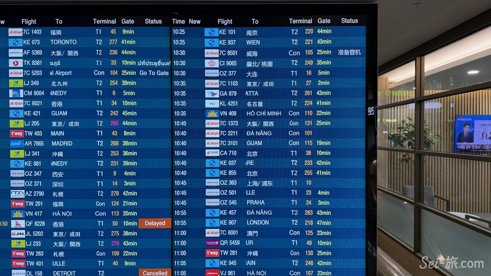 日本の各地へフライトが何本も出ている中で、中国の大連行きは10:30。