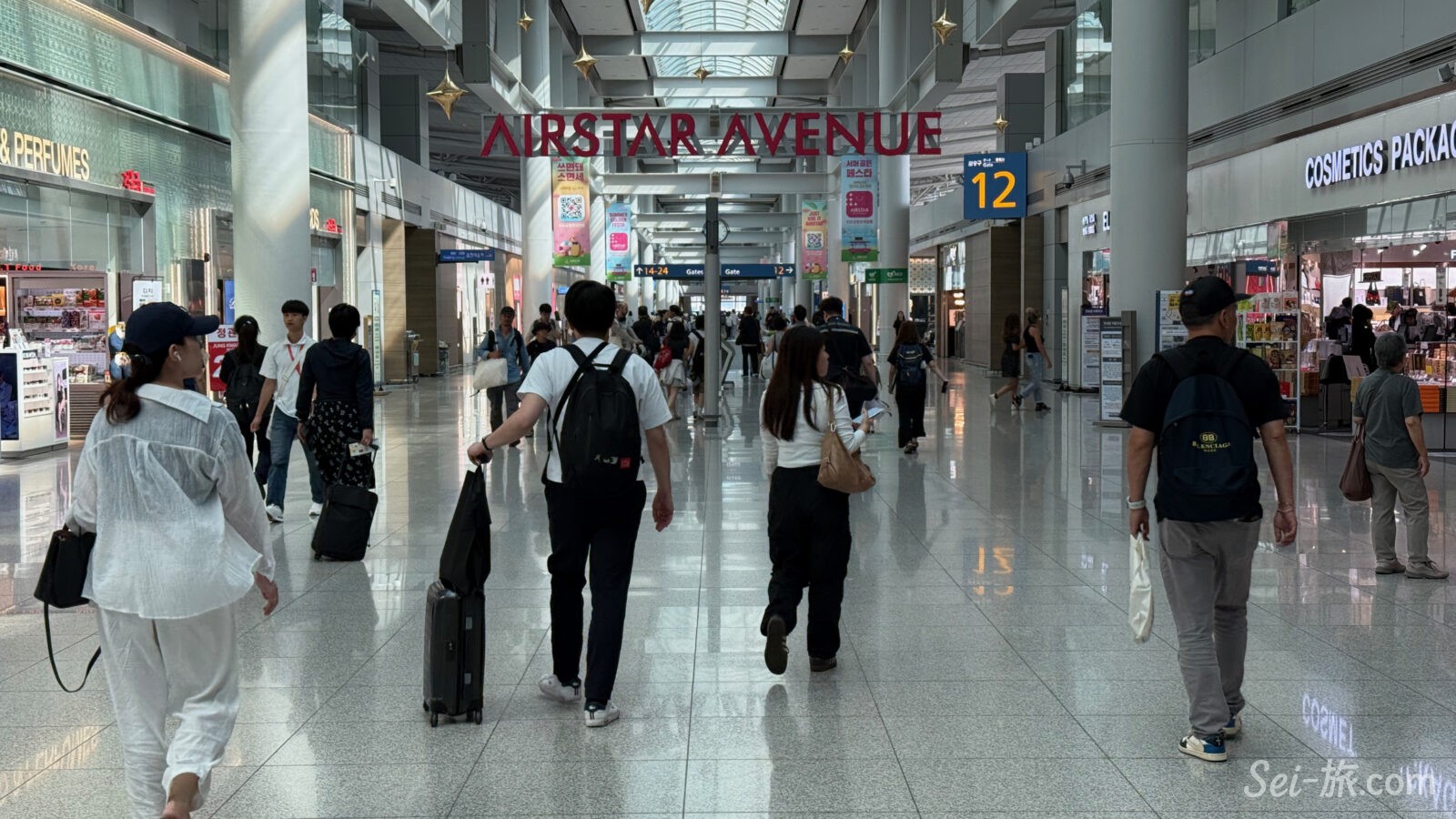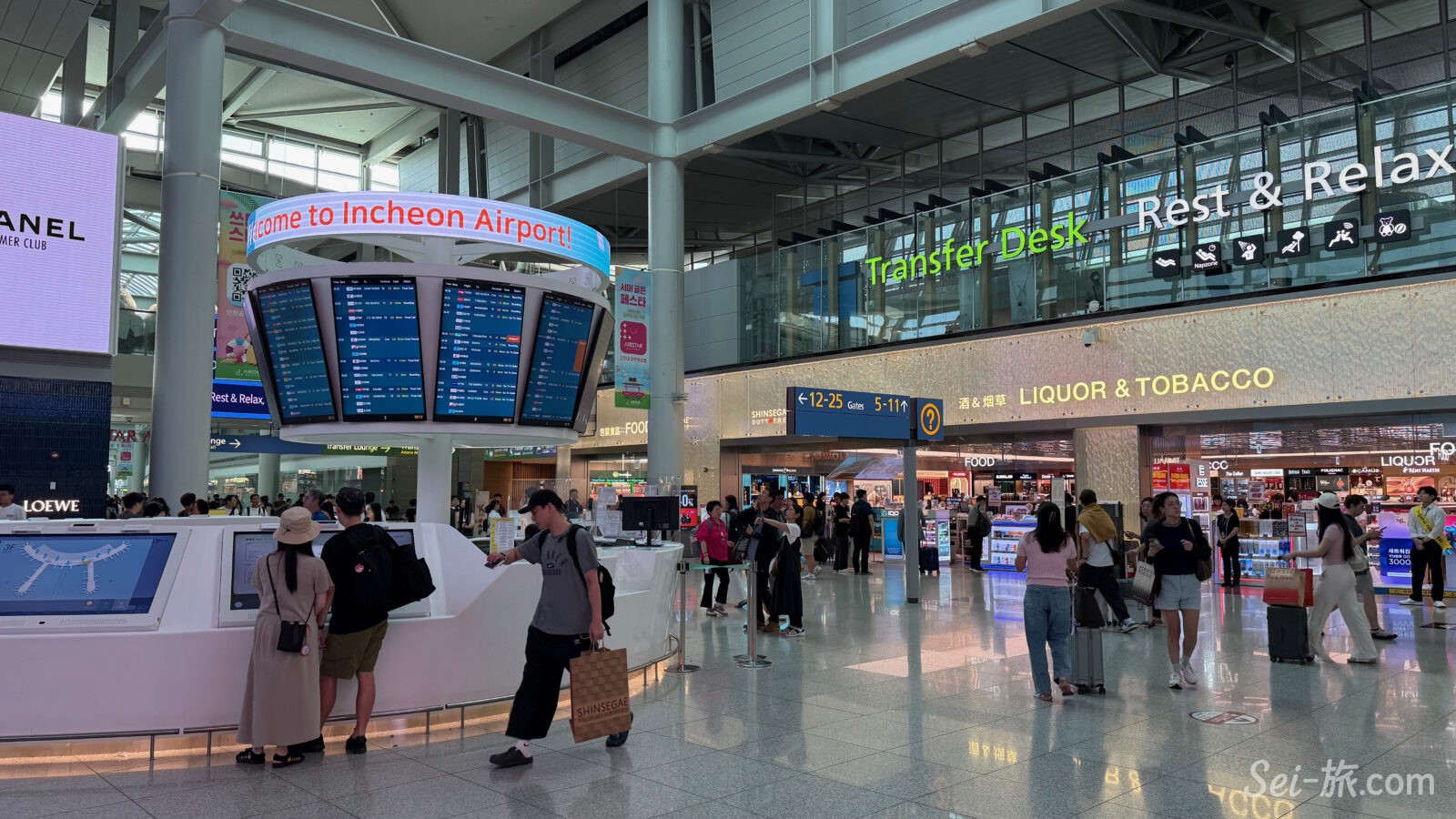 漢字や日本語も現れ、イスラム圏から東アジアへ帰ってきた実感のわく仁川空港のコンコース。