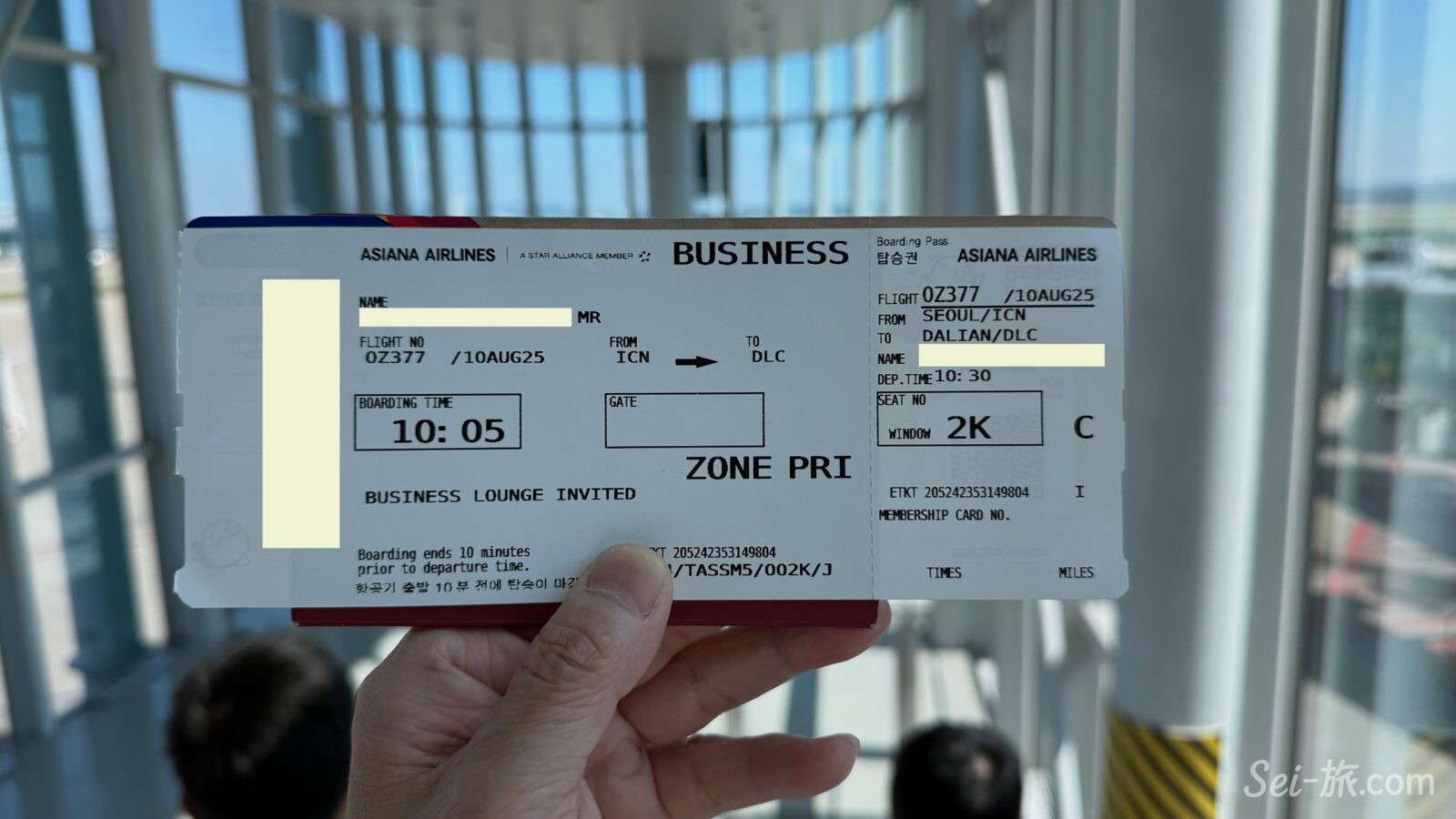 あらためてボーディングパスを確認。大連行きでシートは2Kの窓際ね。