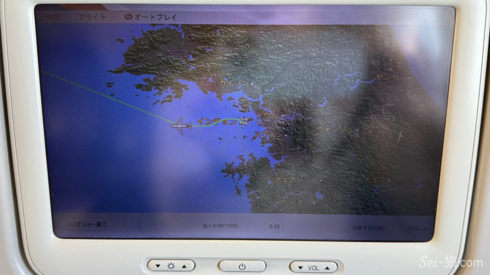 フライトマップは、まさに、これから日本から旅立とうとするかのよう。