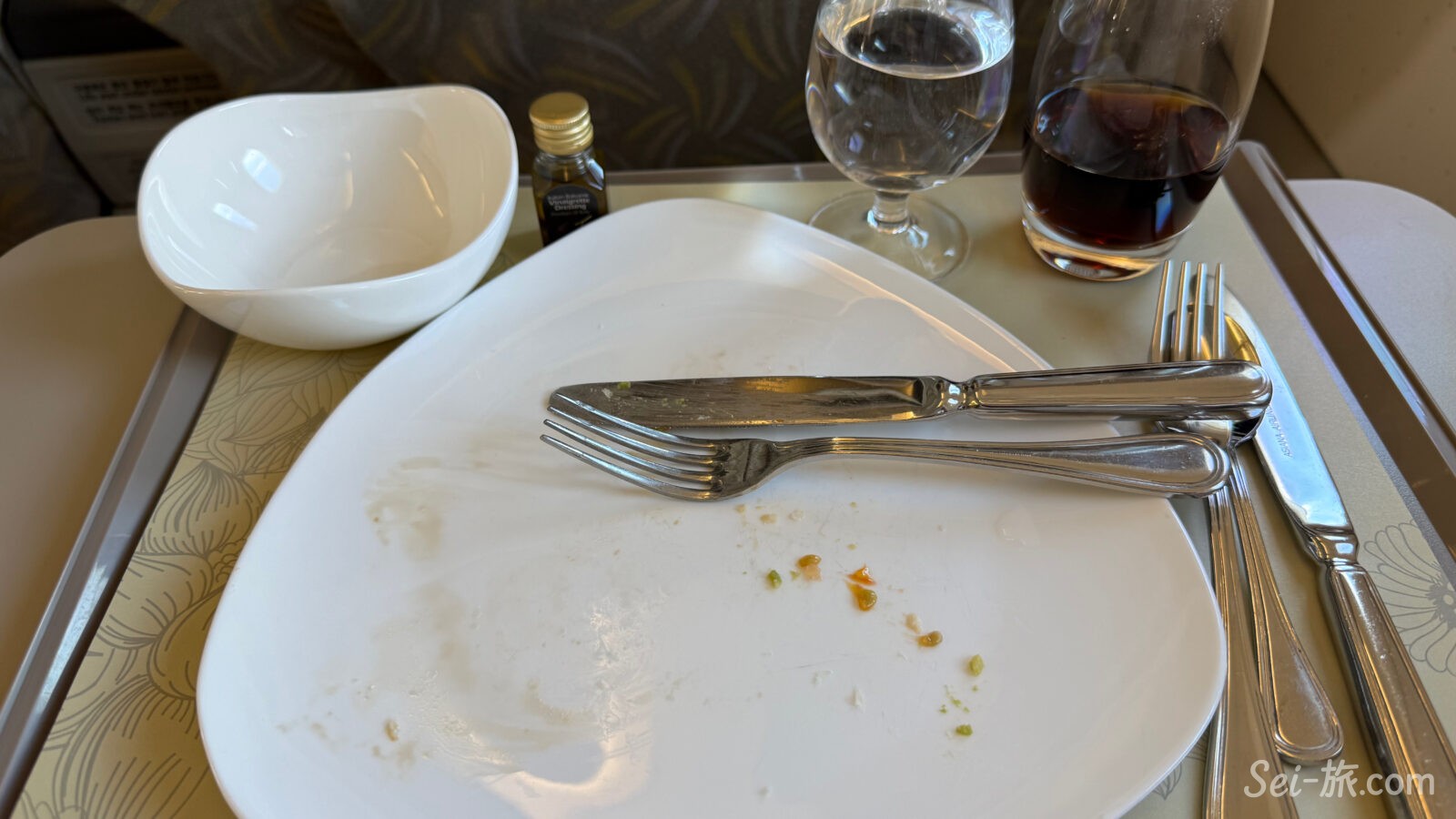 なるほど、韓国と中国のあいのこといった機内食ですね。美味しくいただきました。