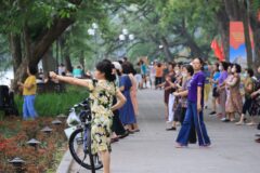 その大聖堂の下で、賑わうハノイ市民の人たち。